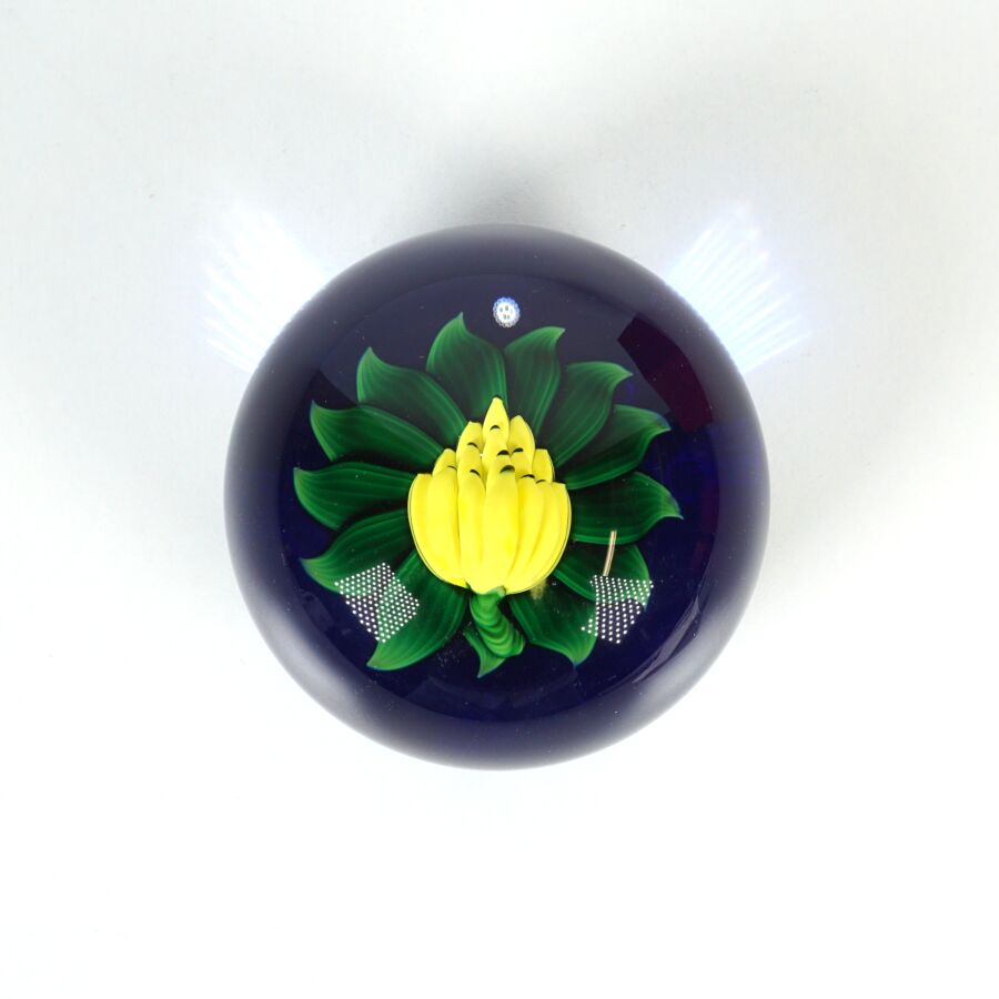 BACCARAT : Presse-papier sulfure "Bananier" 1988, numéroté dessous 128/200 et signé du tampon de la Manufacture, présenté avec son certificat et avec sa boîte d'origine.