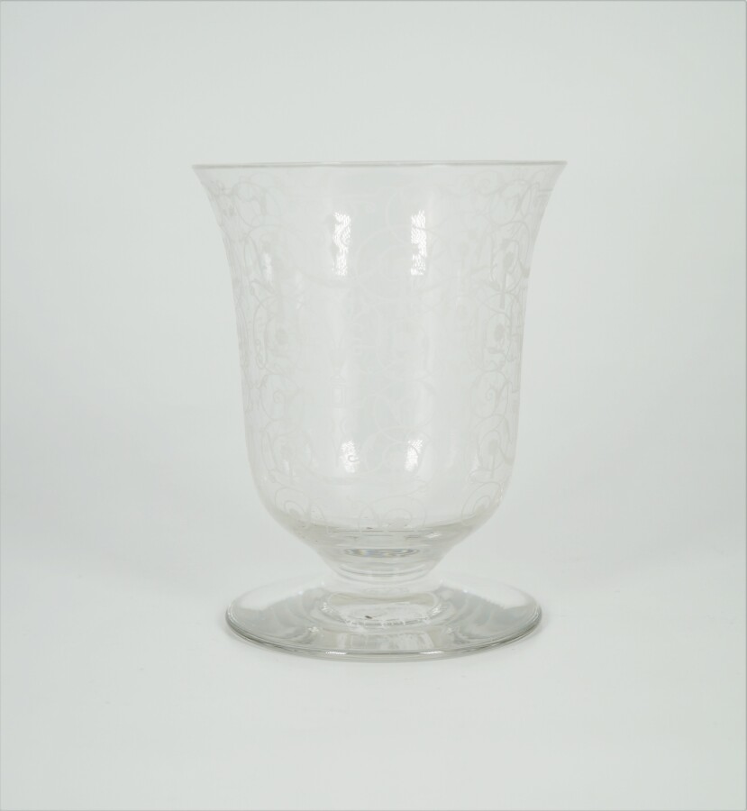 BACCARAT : Vase de forme tulipe en cristal taillé et gravé, à décor de lambrequins, H. 13 cm.