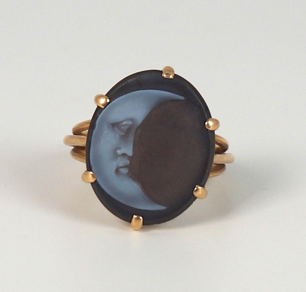 Bague "Camée" en or jaune 18 K (750/oo) à décor d'un croissant de lune. Poids brut : 5,60 g environ.