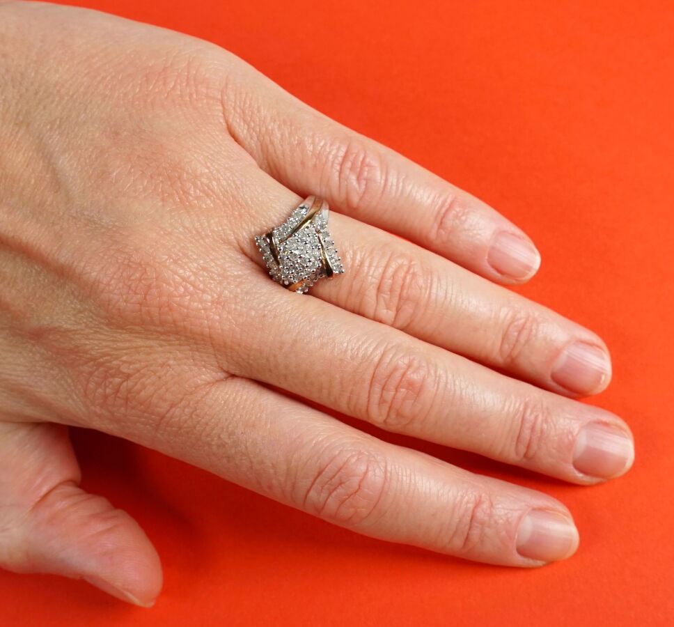 Bague losangée en argent (925/oo) sertie de diamants ronds taille moderne calibrant 0.02 ct chaque environ. TDD 52. Poids brut : 4.71 g environ.