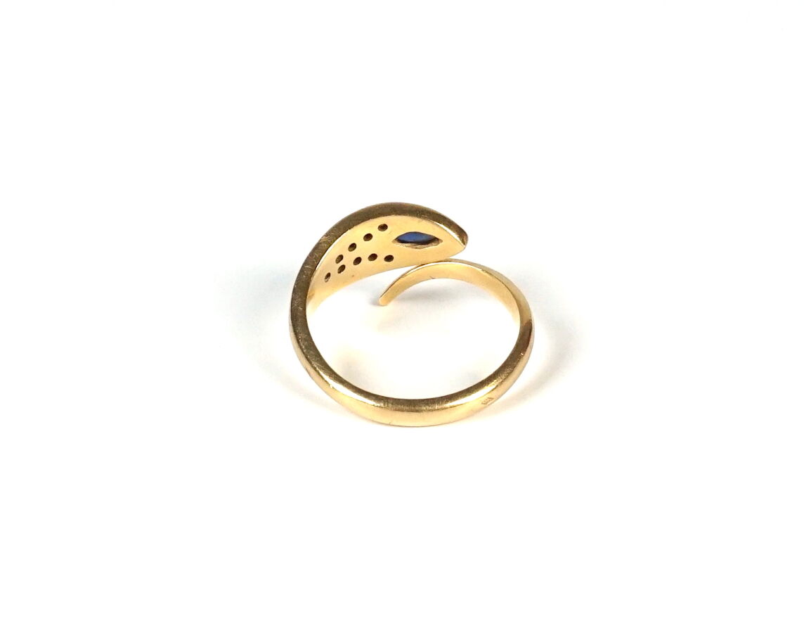 Bague "Serpent" en or jaune 18K (750/oo), sertie d'un saphir taille navette (égrisures), épaulé d'un pavage de petits diamants. TDD 51 Poids brut : 3.3 g environ.