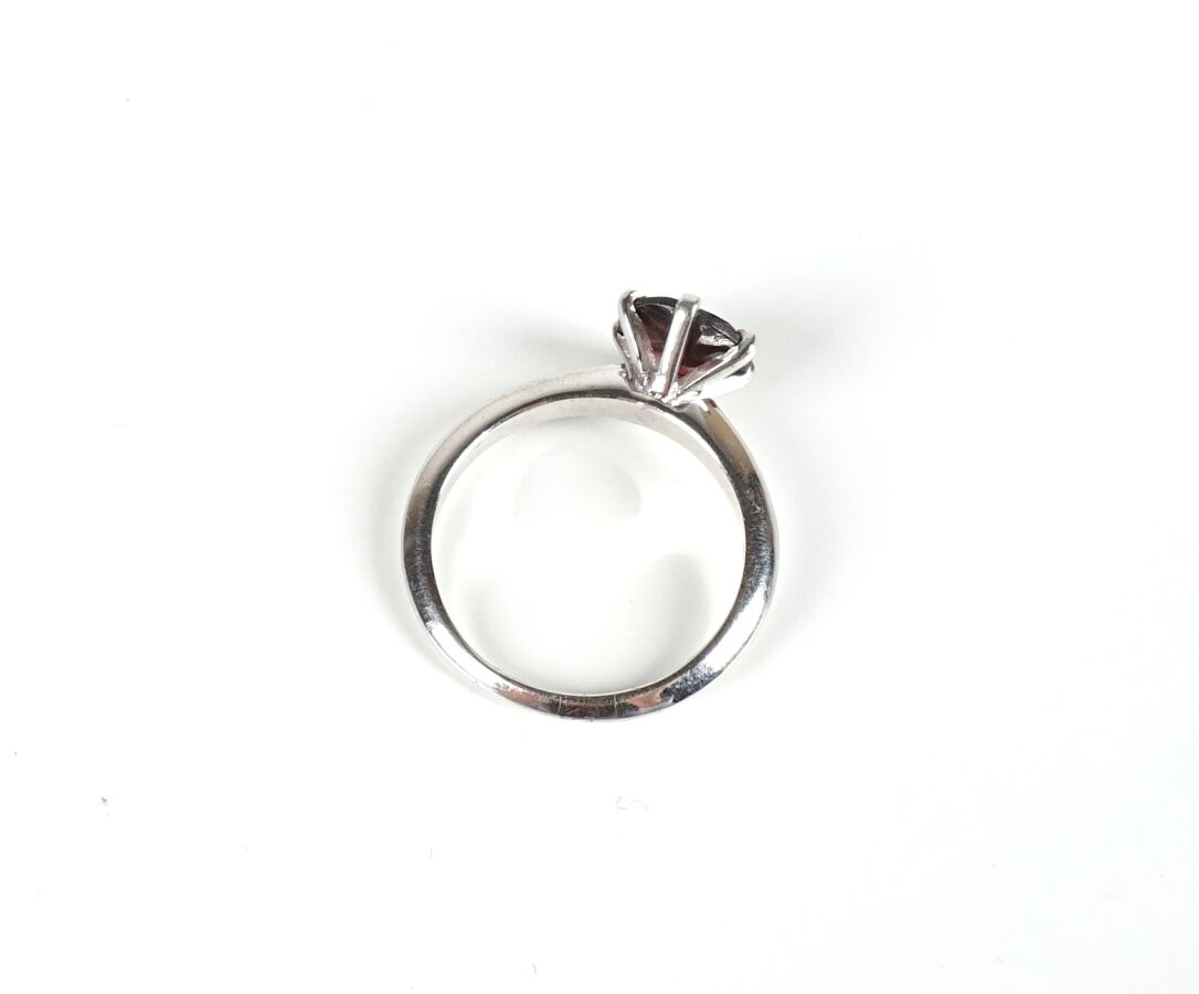 Bague "Solitaire" en argent (925/oo), agrémentée d'une rhodochrosite rouge (D. 7mm). TTD 55. Poids brut : 2.66 g environ.