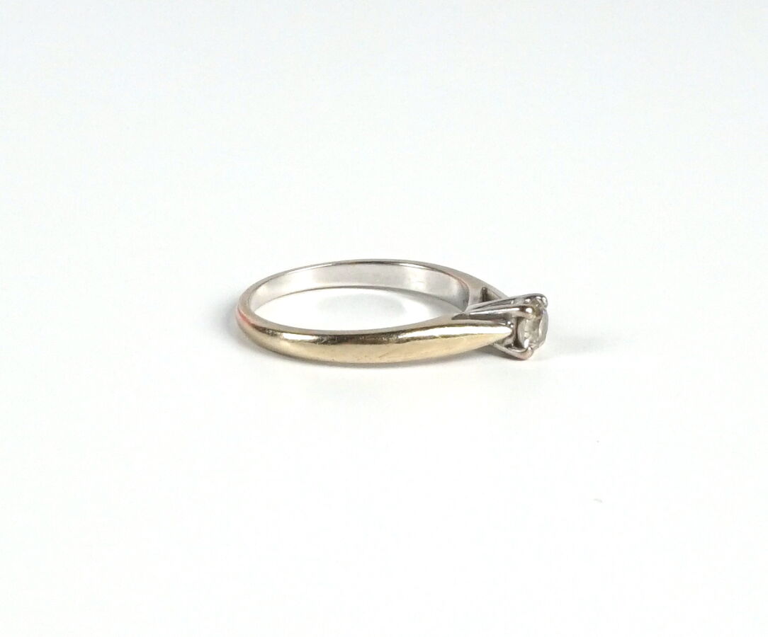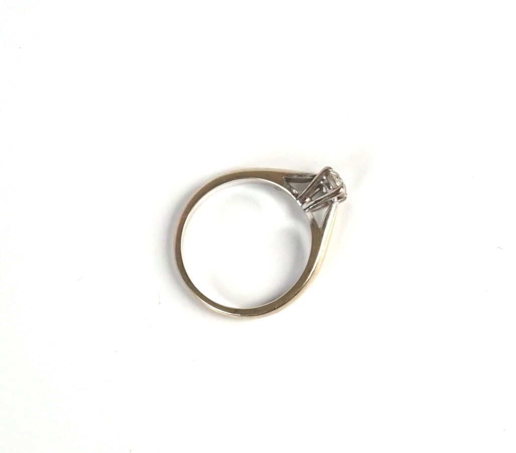 Bague "Solitaire" en or gris 18K (750/oo), sertie 4 griffes d'un diamant rond calibrant 0.3 carat environ. TDD 55.5. Poids brut : 3.6 g environ.