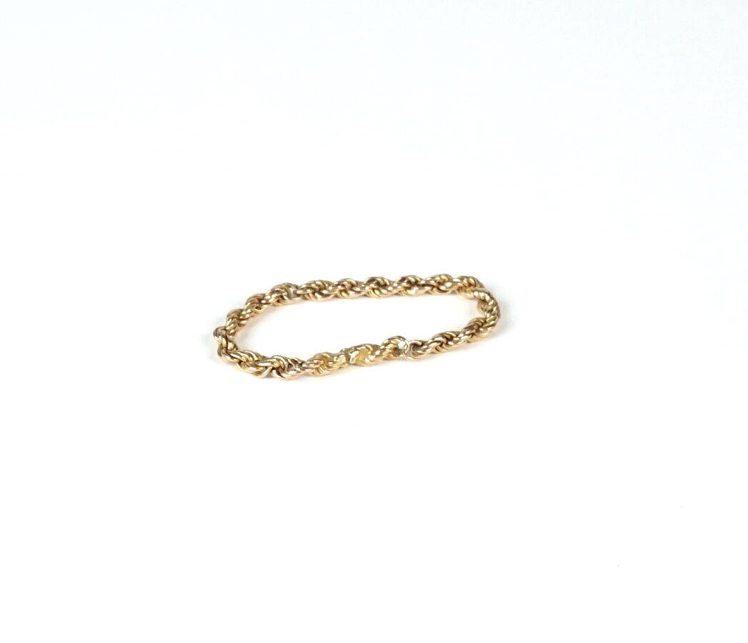 Bague souple en or jaune 18K(750/oo), formée d'une chainette maille torsadée (probable transformation, un maillon à refixer). TDD 55. Poids brut : 1.1 g environ.