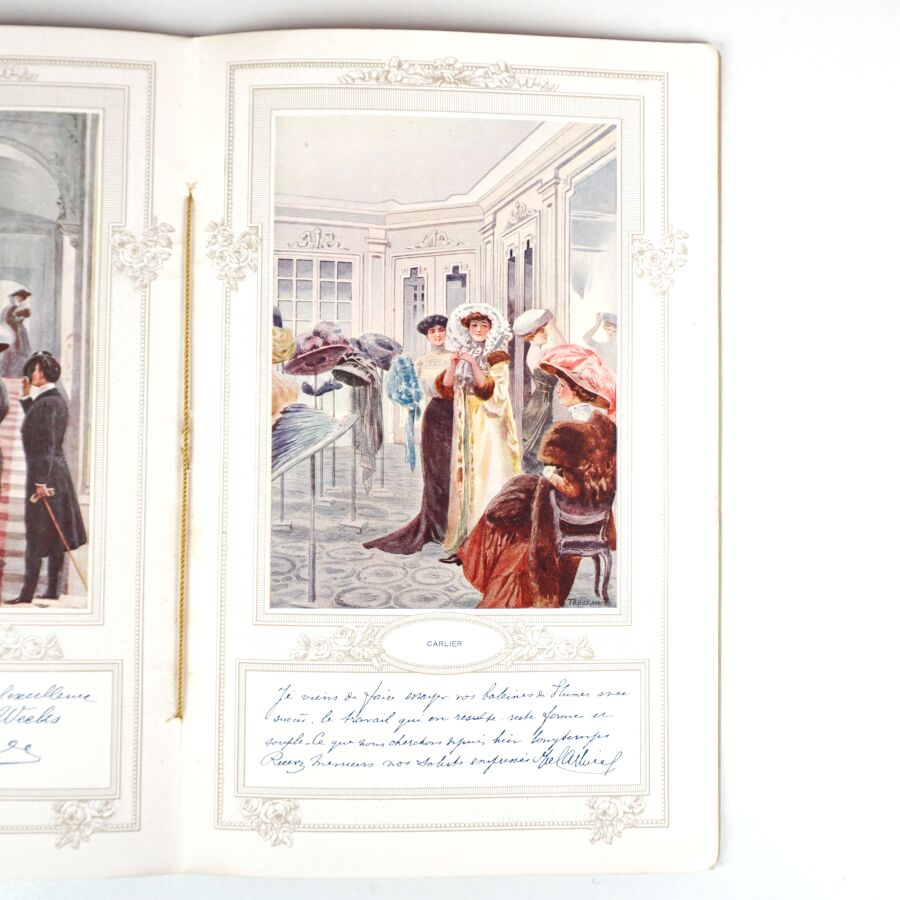 Elle est illustrée de seize compositions en couleurs par Toussaint, dont la plupart des scènes sont représentées dans les salons des couturiers : Paquin, Beer, Worth, Doeuillet, Redfern, Ney soeurs, Carlier, Grunwaldt, Drecoll, Lebouvier, Laferrière, Lachartroulle, Margaine-Lacroix, Bechoff David & Cie.