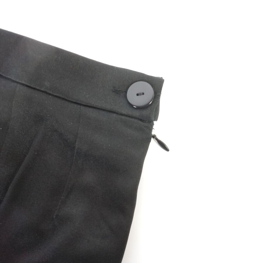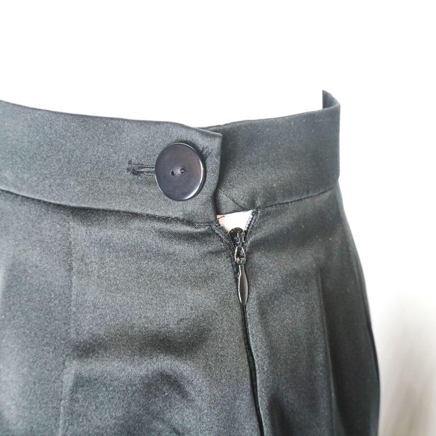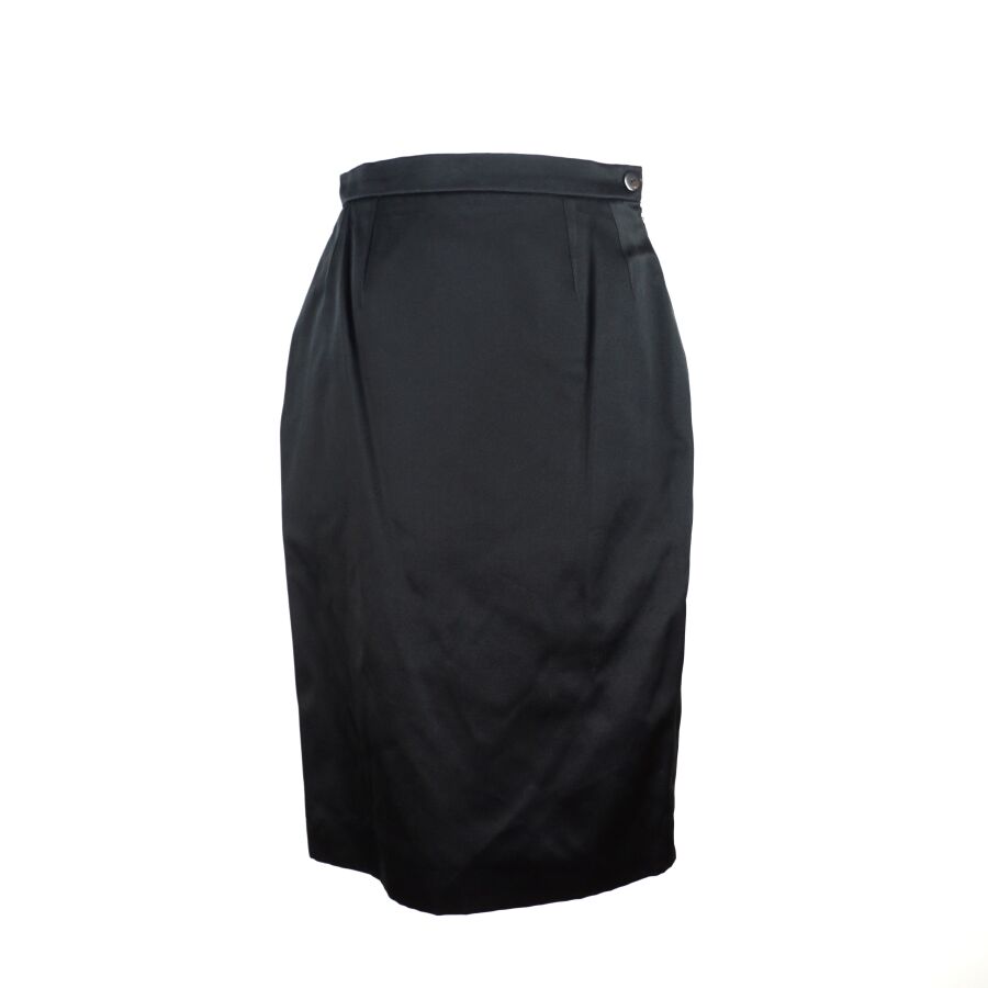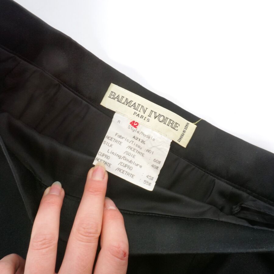 BALMAIN IVOIRE : Jupe crayon de couleur noire en soie et acétate, fermeture latérale à la taille à un bouton et une fermeture zippée, doublure noire, étiquette intérieure, taille indiquée 42, L. Totale : 66.5 cm. Larg. Taille : 35 cm (légères traces).