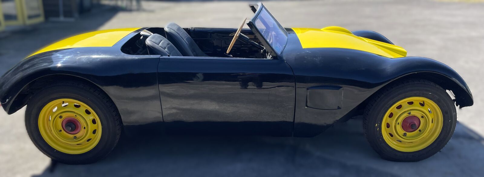 BARQUETTE Bi-place Fabrication Artisanale non terminée, carrosserie polyester jaune et noire env.67/70 sans carte grise, Châssis et moteur Citroën 11 BL, n° de Châssis : 608795, moteur 688-02 n°275041, boite 4 vitesses.