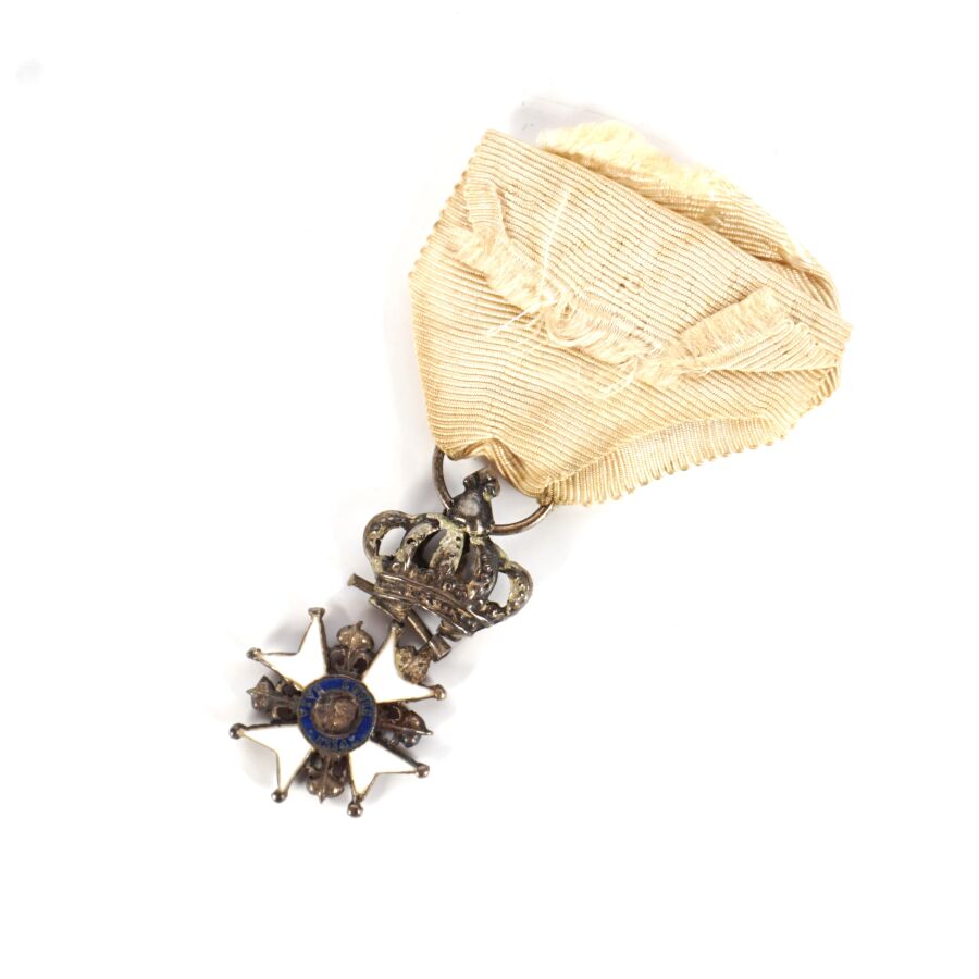 - Couronne seule d'ORDRE DU LYS, en argent, ruban mixte de 35 mm de large, barrette en or, accidents et manques, d'époque Restauration, EM/ABE.