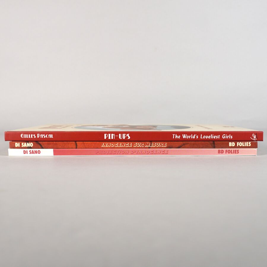 - 2 albums, éd. BD FOLIES : "Innocence sur mesure" et "Projection d'innocence", dédicacés par DI SANO.