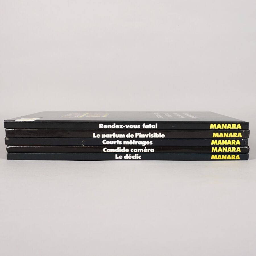 BD ÉROTIQUES par Milo MANARA, éd. ALBIN MICHEL L'ÉCHO DES SAVANES : Ensemble de 5 albums comprenant "Le parfum de l'invisible", "Courts métrages", "Rendez-vous fatal", "Le Déclic" (tome1) et "Candide caméra".