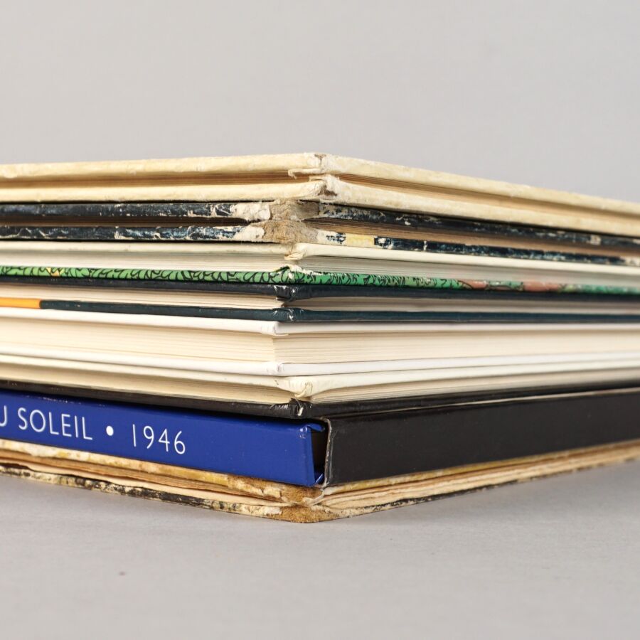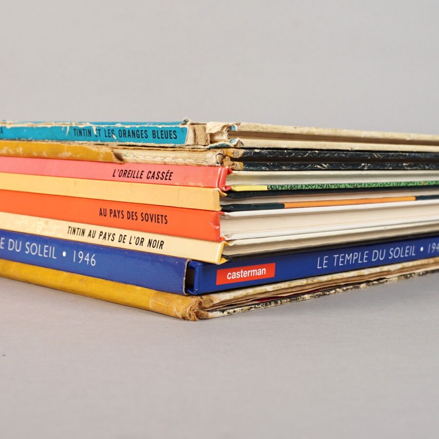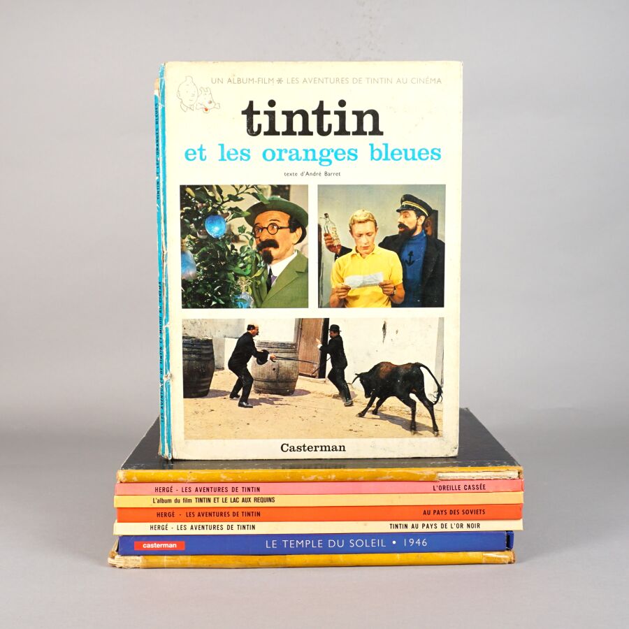 - 7 albums, TINTIN : "Tintin et les oranges bleues", "Tintin et le mystère de la toison d'or", "L'oreille cassée", "Le lac aux requins", "Tintin au pays des Soviets", "Tintin au pays de l'or noir" et "Le temps do soleil" (format à l'italienne, fac-similé de l'édition de 1946),