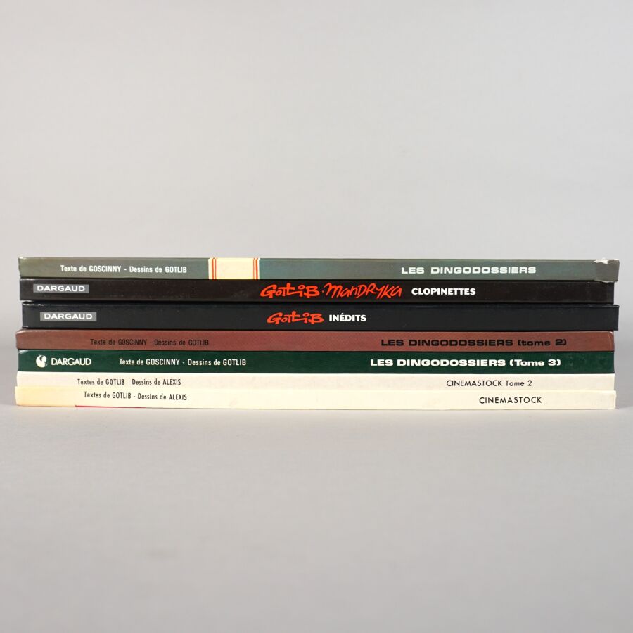 BD HUMOUR par GOTLIB, éd. DARGAUD : Ensemble de 7 albums comprenant "Cinémastock" (tomes 1 et 2), "Les dingodossiers" (tomes 1, 2 et 3), "Clopinettes" et "Inédits".