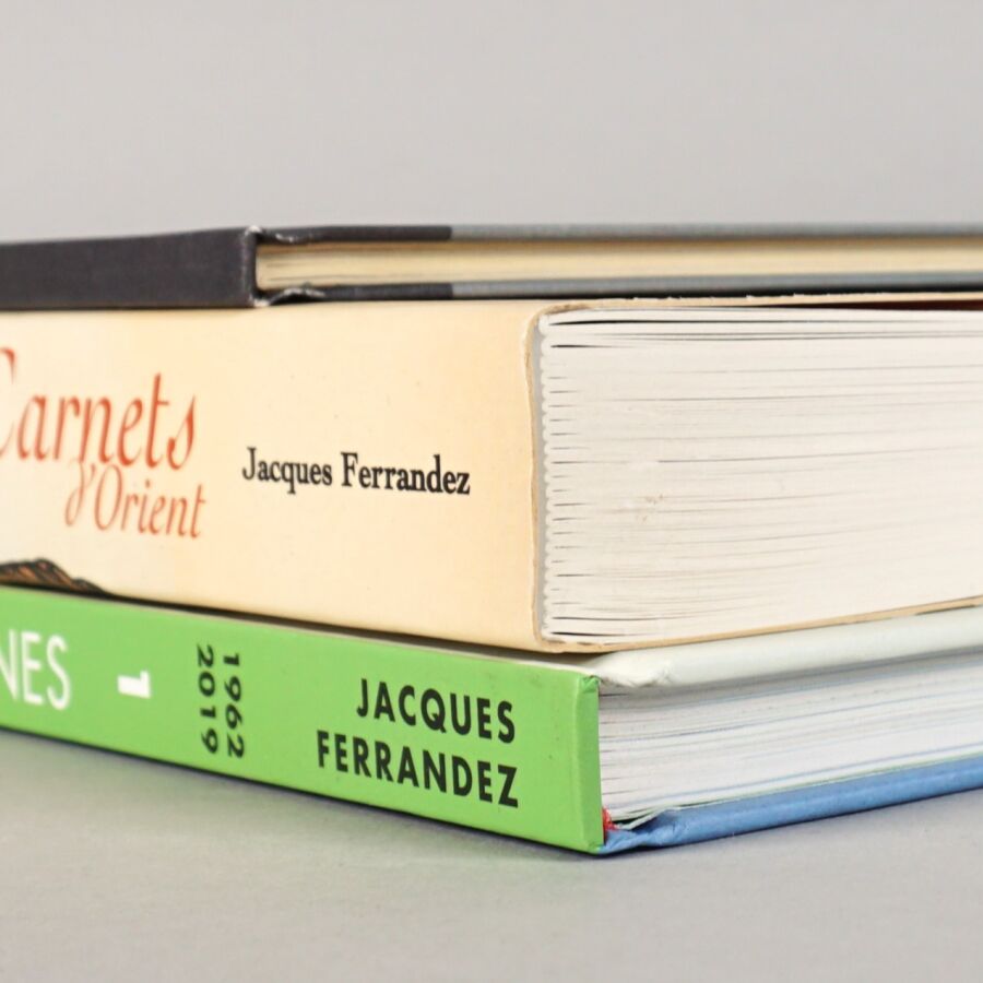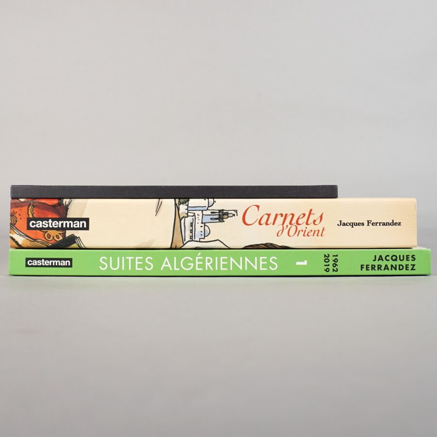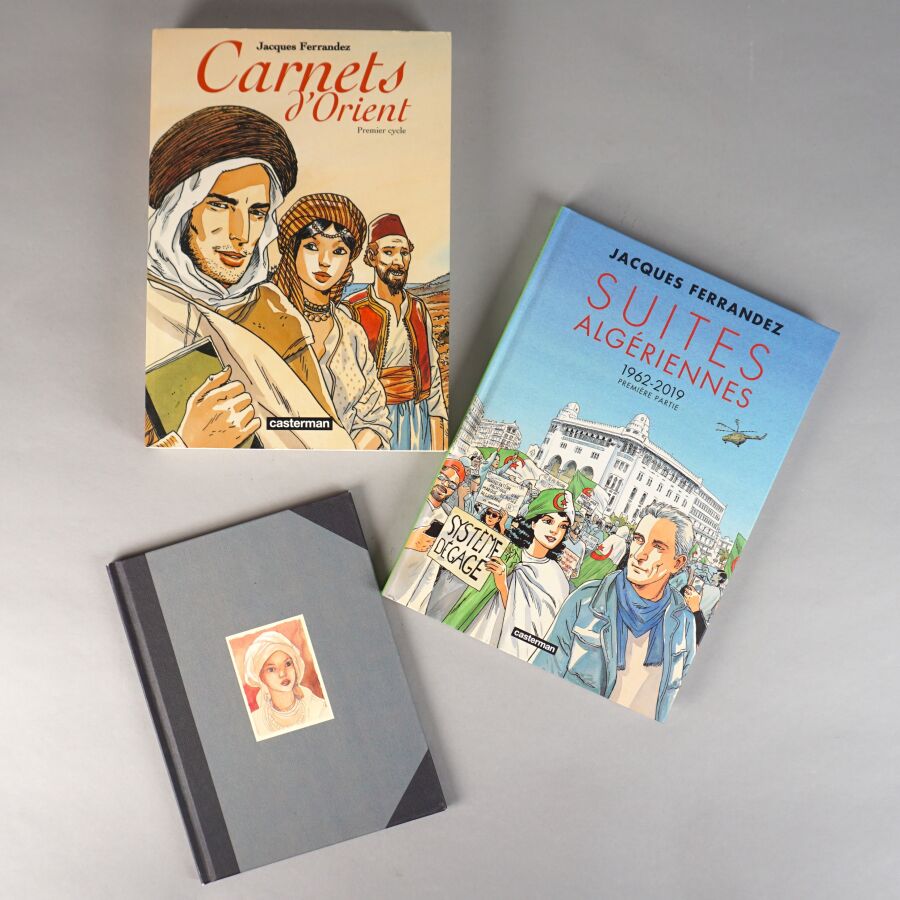 BD par Jacques FERRANDEZ, éd. CASTERMAN : Ensemble de 3 albums comprenant "Carnets d'orient" (premier cycle, petit format souple), "Suites algériennes" (première partie) et un carnet de croquis "Notes sur la régence d'Alger".