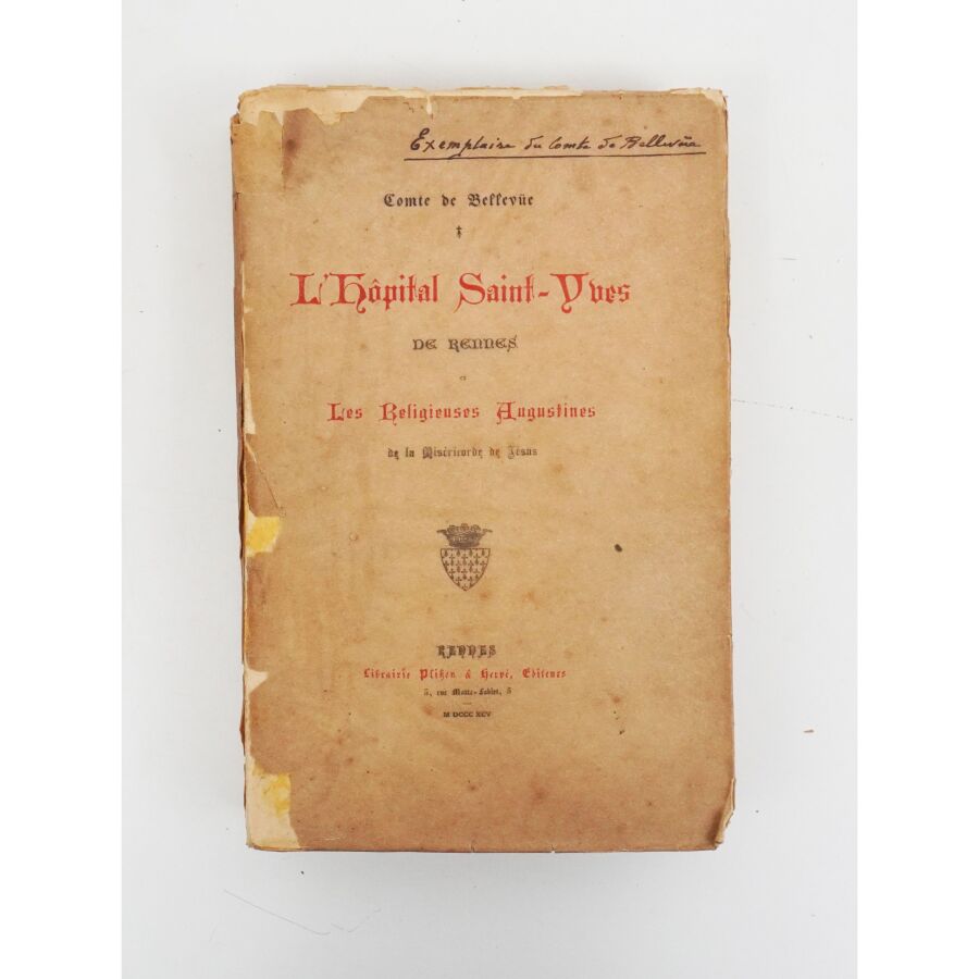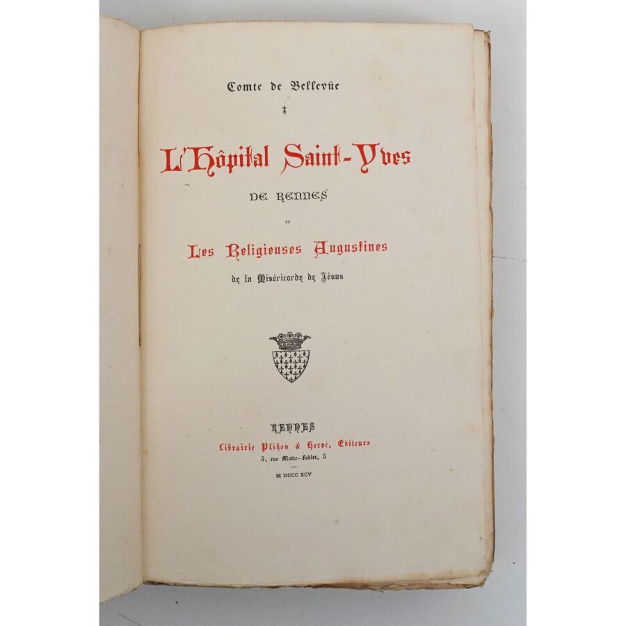 BELLEVÜE (Xavier, Comte de). L'Hôpital Saint-Yves de Rennes et les religieuses augustines de la Miséricorde de Jésus. Rennes, Plihon & Hervé, 1895. Grand in-8, broché, couv. parcheminée rempliée imprimée en rouge et noir (brunie, déchirures).