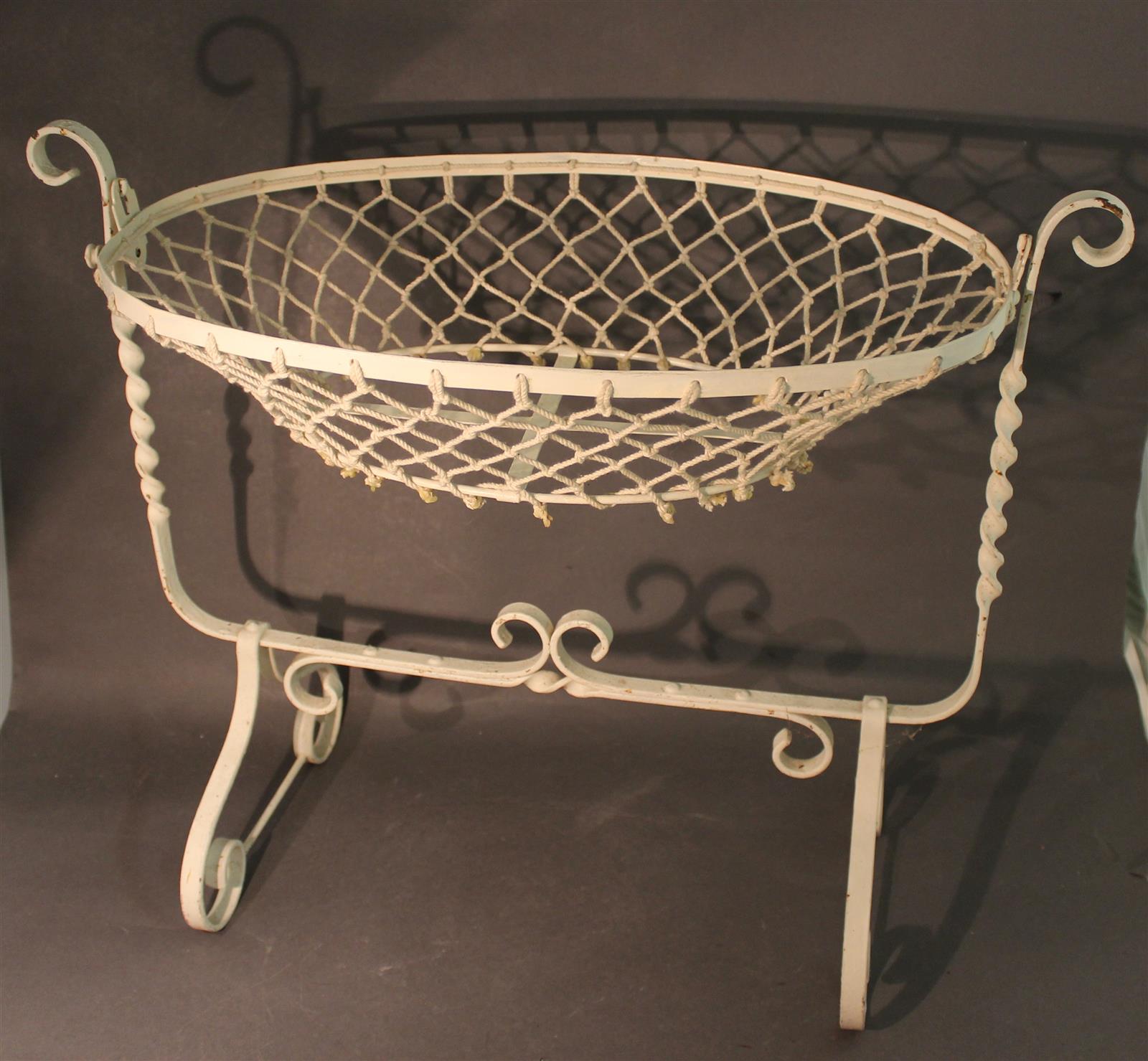 Berceau de poupée en fer forgé laqué blanc, L. 59 cm, H. 49 cm
