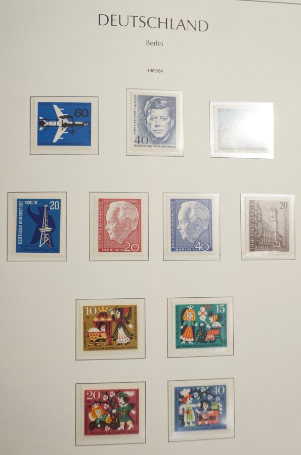 BERLIN : Dans 2 albums Leuchturm avec pochettes, collection de TP N ** quasi complète de 1949 à 1989 avec carnets.