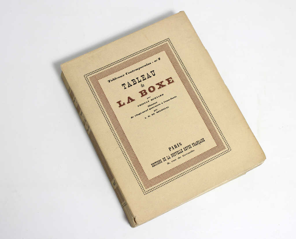 BERNARD (Tristan) - Tableau de la boxe - Paris ; NRF, 1922 - 1 volume petit In-4° broché - 29 gravures à l'eau-forte par A. D. de Segonzac (dont frontispice et 8 à pleine page) - Petite fente de 2 cm en bas de dos, couverture salie et tachée au 2nd plat - Exemplaire numéroté XVIII sur vélin (sur les 18 hors commerce) - Edition originale.