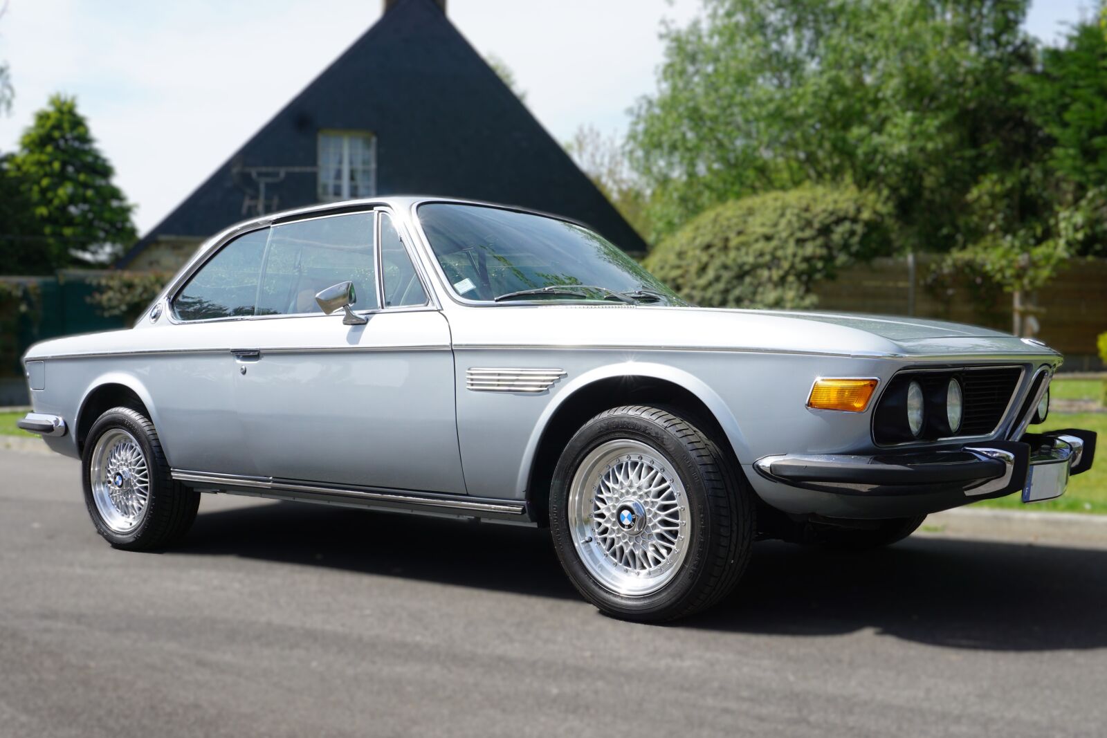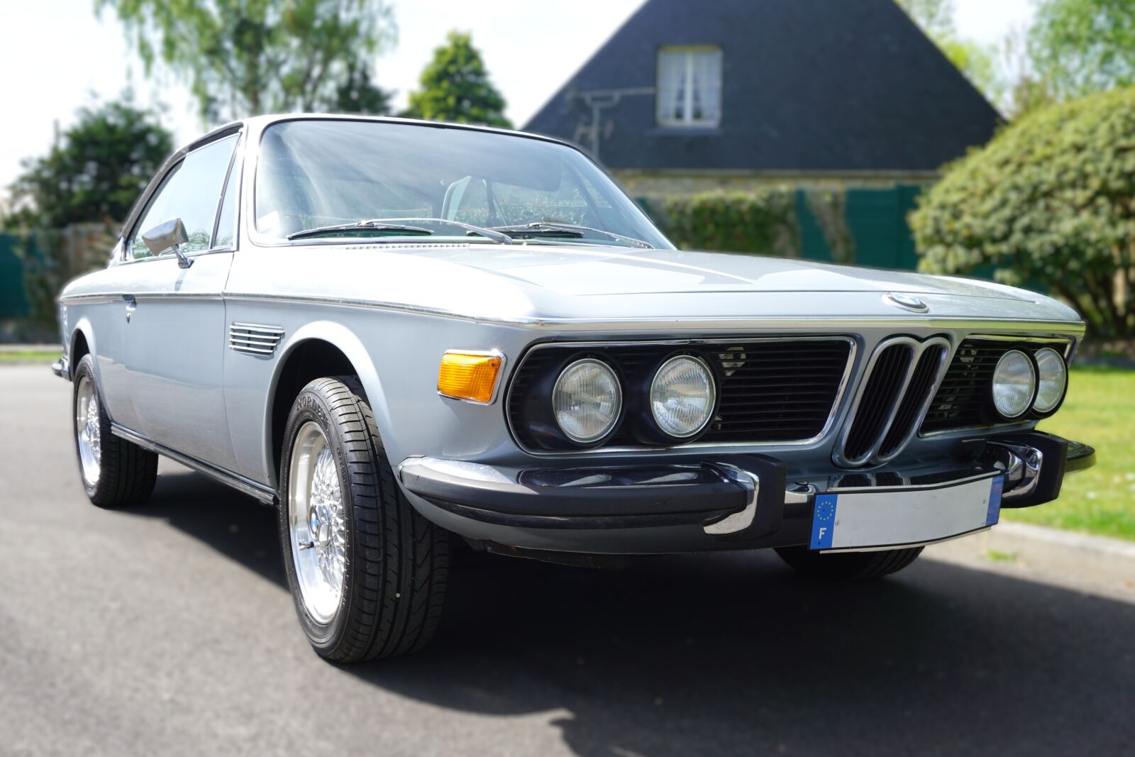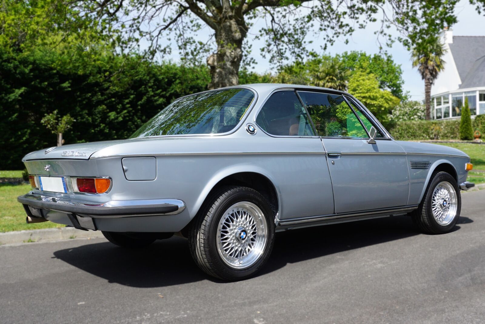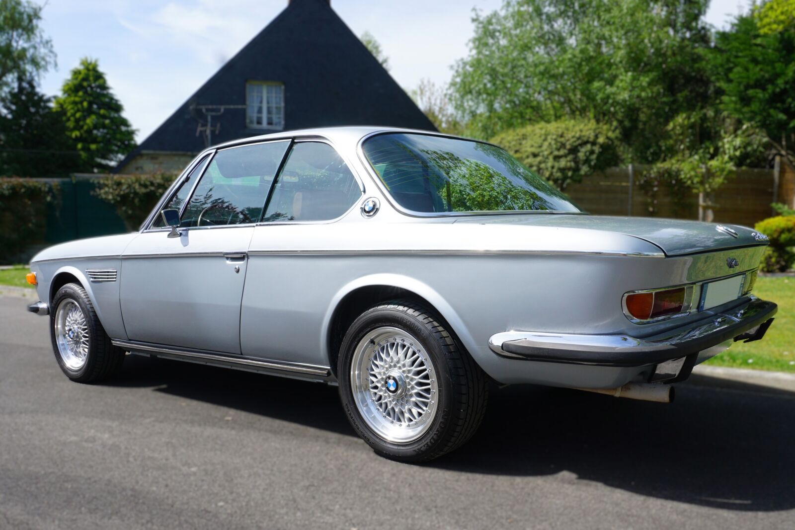 BMW type 30 CS du 06/02/ 1973, Coupé Karmann numéroté, 4 places, toit ouvrant, carte grise française avec contrôle tech. n° de série : 2213276, 20189 km au compteur. Voiture ayant été totalement restaurée aux niveaux carrosserie avec peinture neuve de couleur gris clair métallisé, sellerie cuir havane refaite, pneus neufs sur jantes alliage, un dossier photos important de cette restauration est à disposition. Les chromes sont neufs : pare-chocs avant et arrière avec butoirs, baguettes, entourages de vitres, sigles. Les 4 phares et les feux arrières sont également neufs. Belles boiseries en haut des portes, sur le tableau de bord ainsi que le pommeau de vitesses, instruments de contrôle au complet 4 cadrans ronds, volant 3 branches d'origine gainé cuir, auto radio Blaupunkt. Pare-brise, glaces et custode intacts. Moteur 6 cylindres en ligne de 3 litres à carburateurs 17 CV en bon état de marche. Boite 4 vitesses manuelle. Roue de secours dans coffre AR.