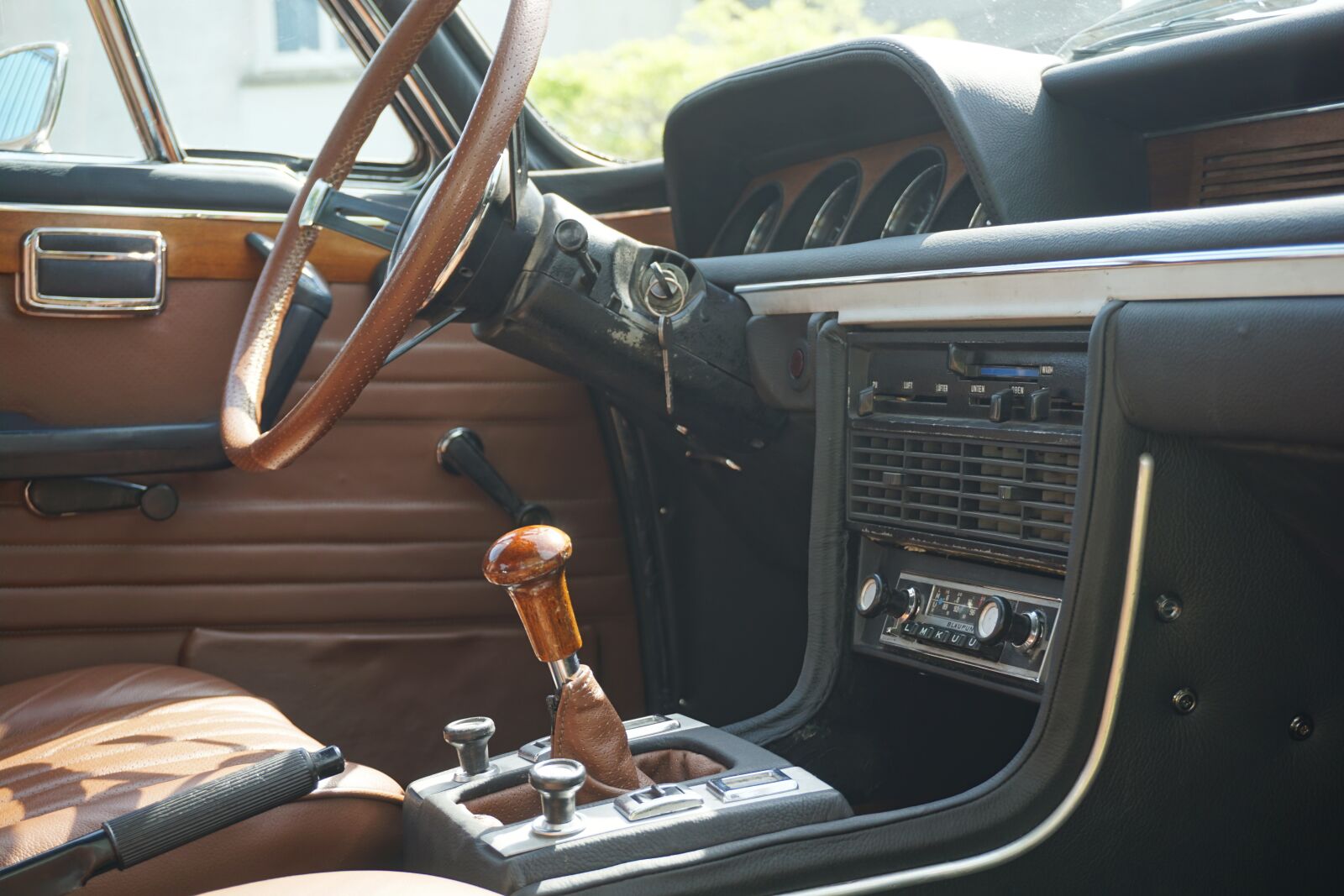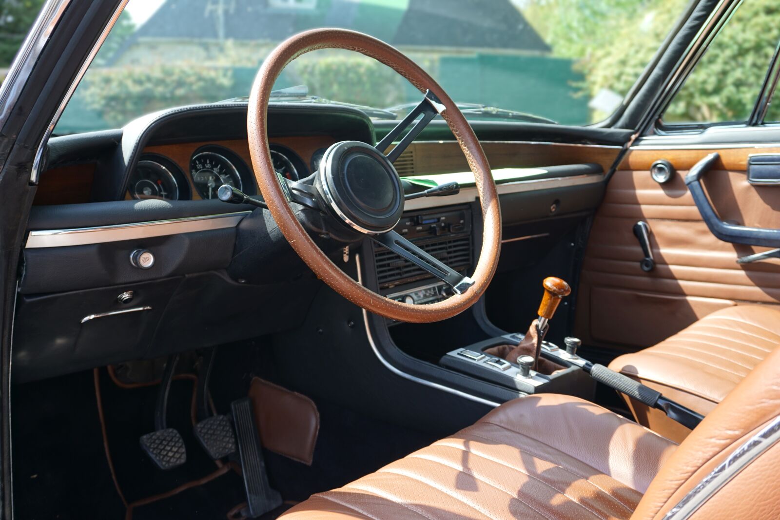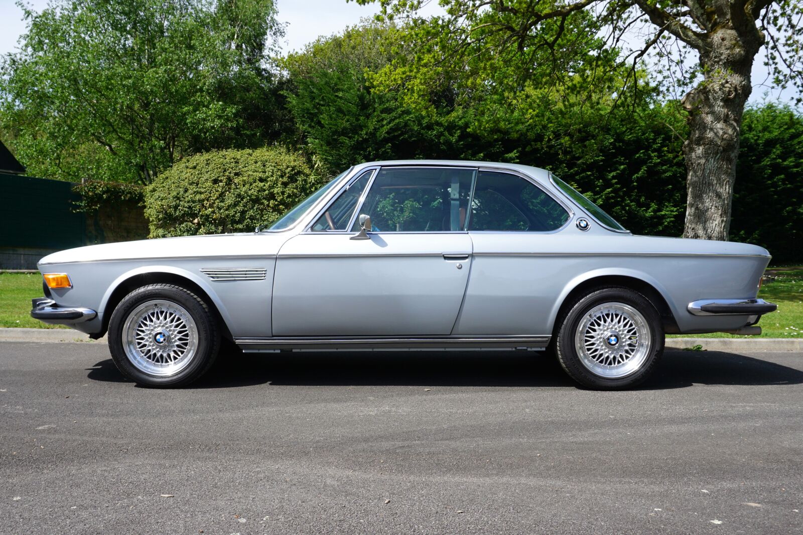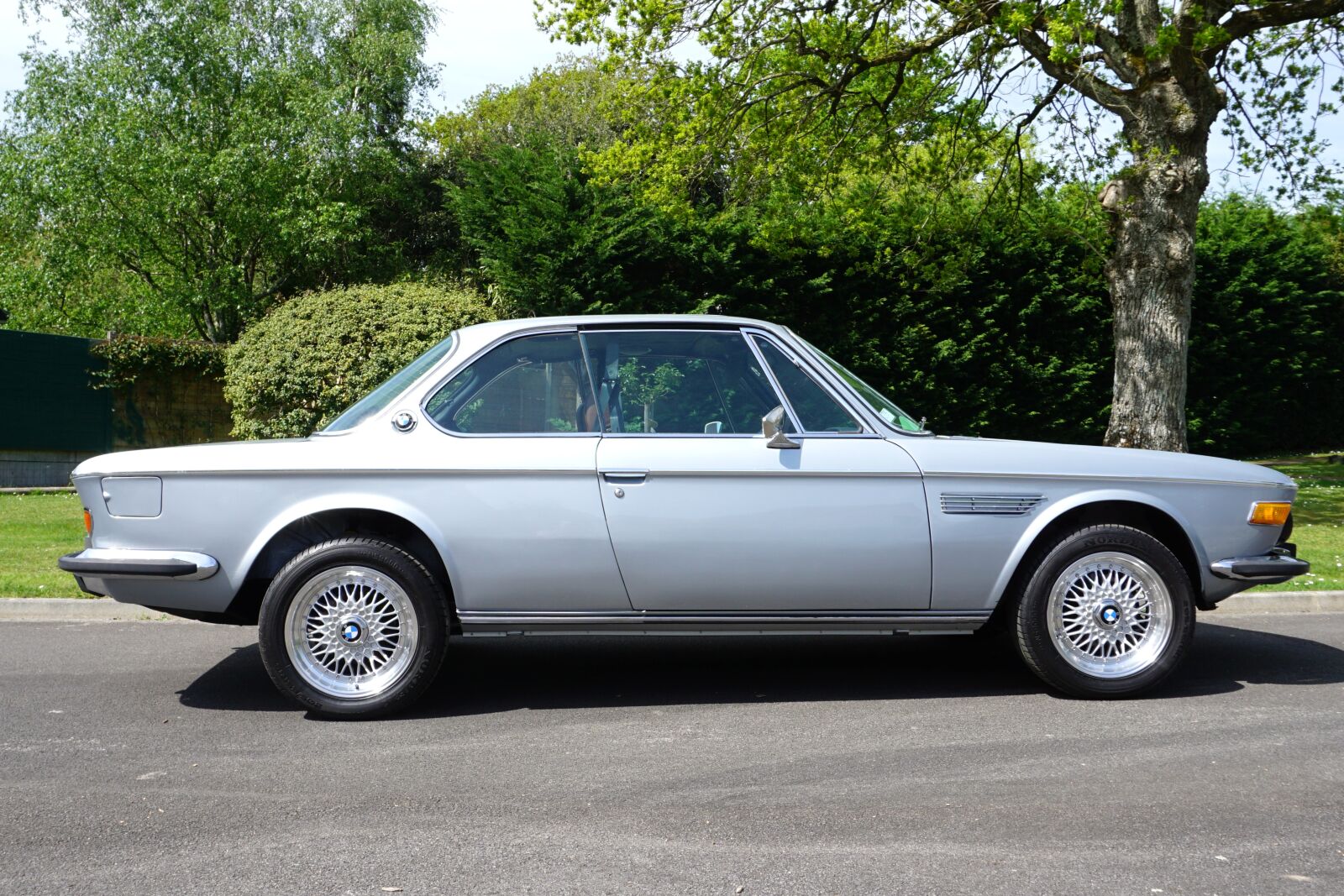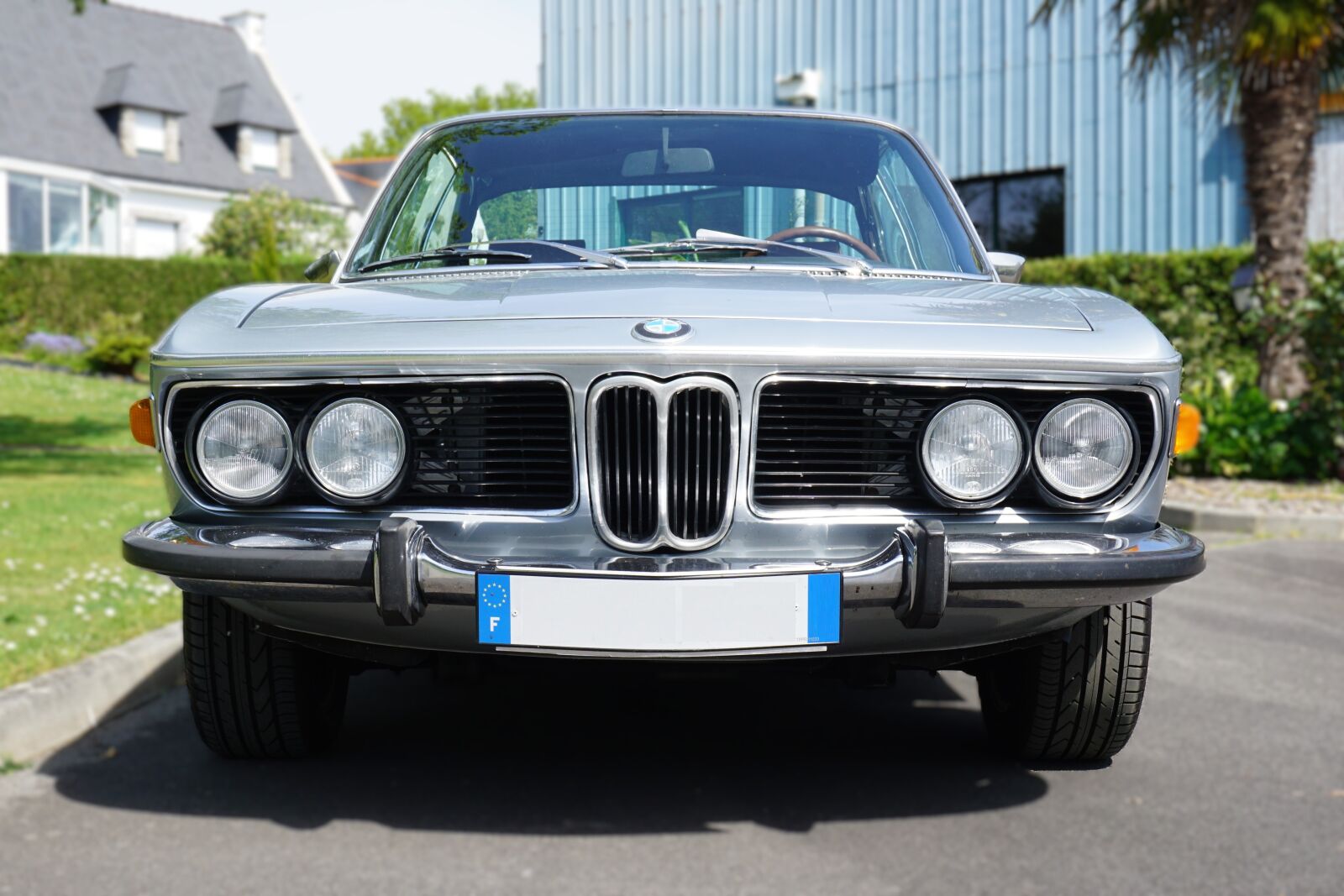 BMW type 30 CS du 06/02/ 1973, Coupé Karmann numéroté, 4 places, toit ouvrant, carte grise française avec contrôle tech. n° de série : 2213276, 20189 km au compteur. Voiture ayant été totalement restaurée aux niveaux carrosserie avec peinture neuve de couleur gris clair métallisé, sellerie cuir havane refaite, pneus neufs sur jantes alliage, un dossier photos important de cette restauration est à disposition. Les chromes sont neufs : pare-chocs avant et arrière avec butoirs, baguettes, entourages de vitres, sigles. Les 4 phares et les feux arrières sont également neufs. Belles boiseries en haut des portes, sur le tableau de bord ainsi que le pommeau de vitesses, instruments de contrôle au complet 4 cadrans ronds, volant 3 branches d'origine gainé cuir, auto radio Blaupunkt. Pare-brise, glaces et custode intacts. Moteur 6 cylindres en ligne de 3 litres à carburateurs 17 CV en bon état de marche. Boite 4 vitesses manuelle. Roue de secours dans coffre AR.