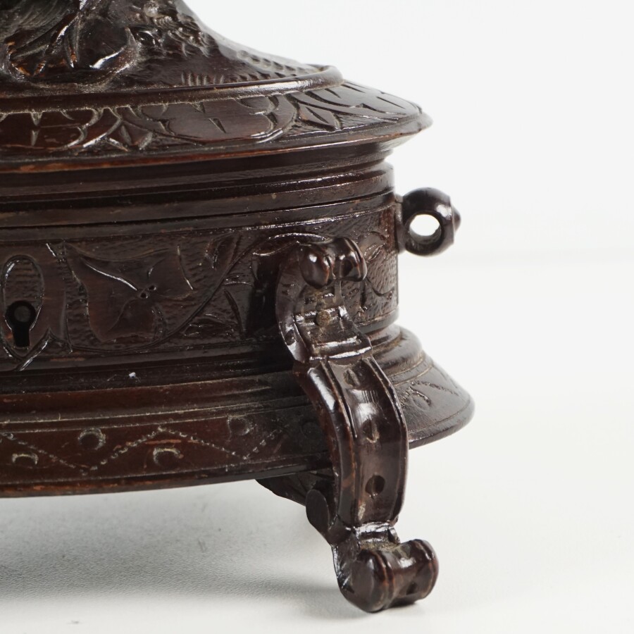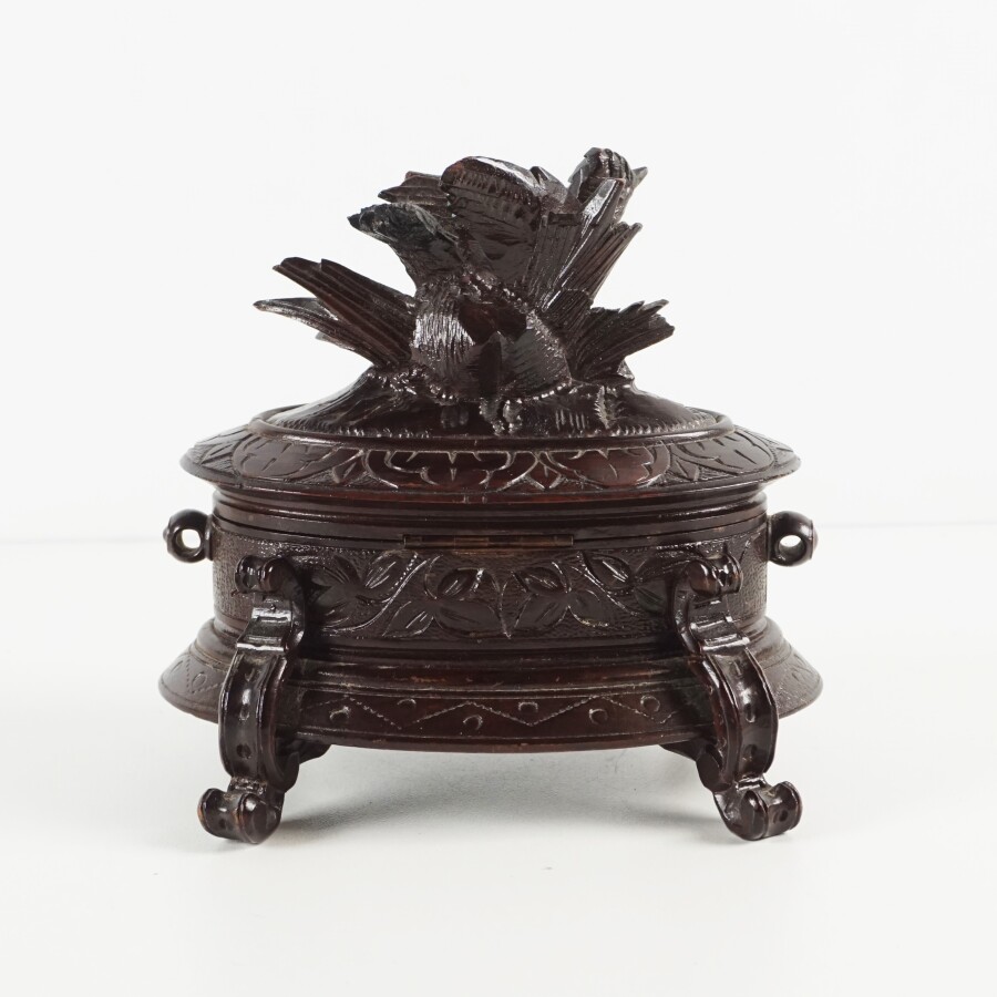 Boîte à bijoux en bois à décor d'un oiseau, travail de bohème, H. 15 cm.
