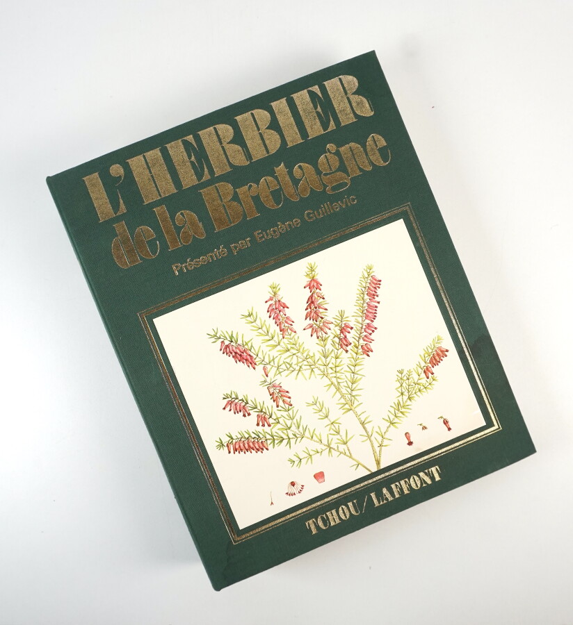 [BOTANIQUE] - GUILLEVIC (Eugène) - L'herbier de la Bretagne - Paris ; Tchou/Laffont, 1974 - 1 volume In-4° présenté sous forme de classeur toilé vert orné d'1 illustrations couleurs contre collée au 1er plat - 1er plat et dos titrés or - Nombreuses planches en couleurs avec texte explicatif et page vierge en regard servant à ranger la variété correspondante trouvée dans la nature - Très bon exemplaire.