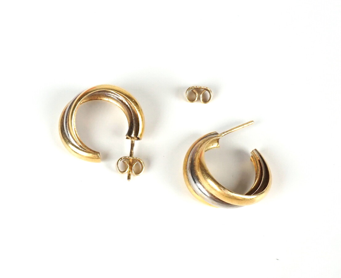 Boucles d'oreilles "Créoles" en or de 2 tons 18K (750/oo), H. 2 cm. Poids brut : 7.5 g environ.