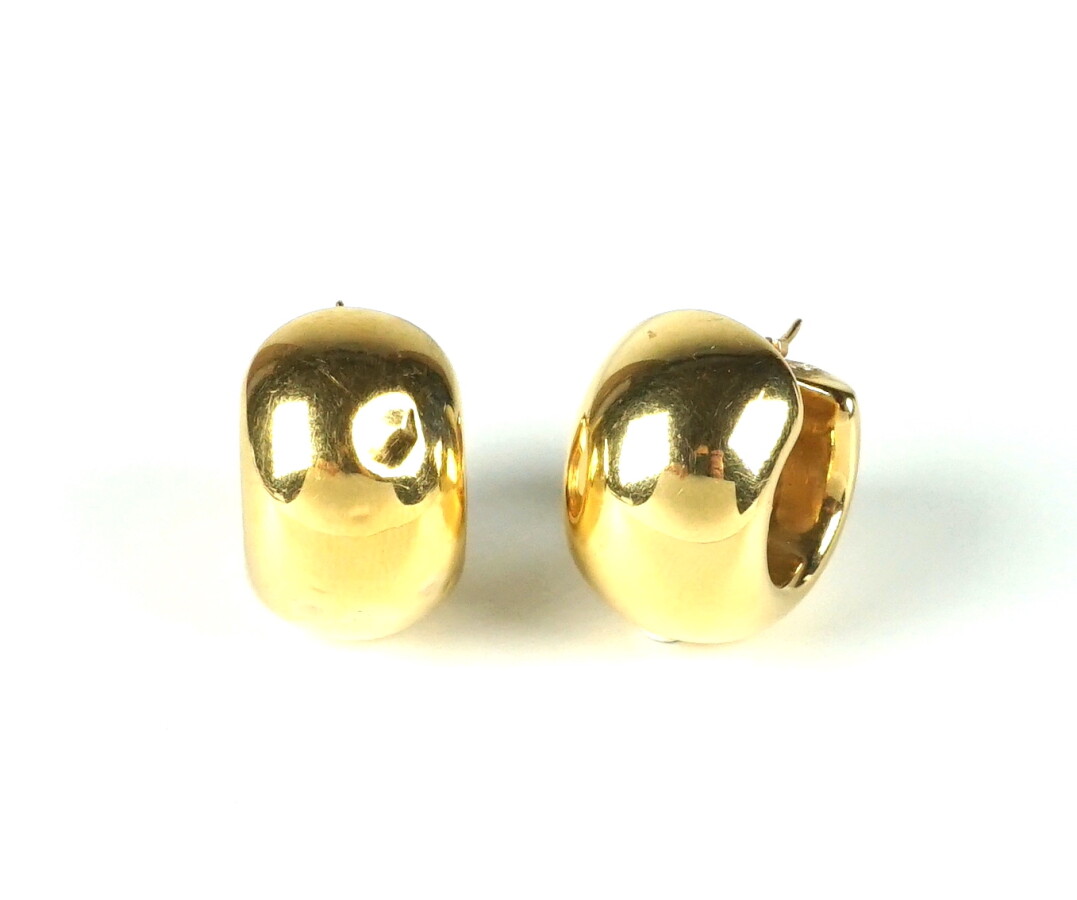 Boucles d'oreilles "Créoles" en or jaune 18K (750/oo), H. 2 cm (quelques chocs). Poids brut : 7.44 g environ.