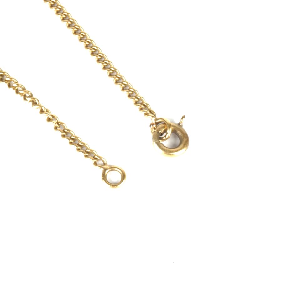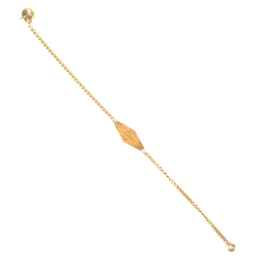Bracelet de baptême en or jaune 18K (750/oo), maille forçat, plaque losangée gravée "Georges", fermoir à anneau ressort, L. 13.2 cm. Poids brut : 1.9 g environ (accidentée).