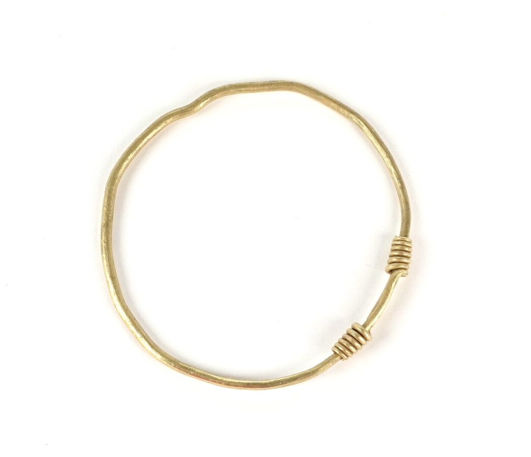 Bracelet "Jonc" en or jaune 18K (750/oo), à décor d'enroulements, D. 7 cm environ. Poids brut : 17.8 g environ.