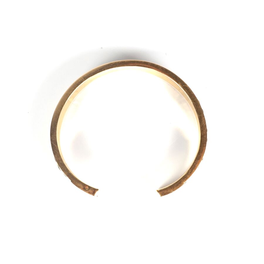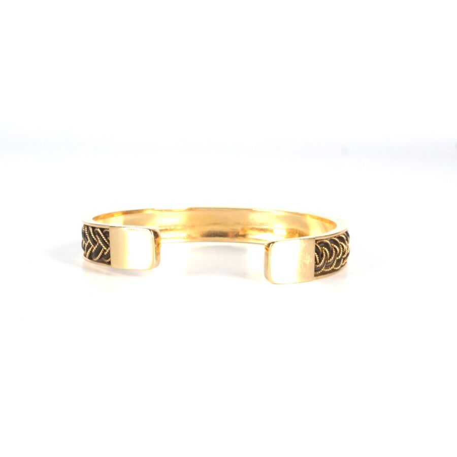 Bracelet jonc en or jaune 18K (750/oo) à motif torsadé d'un poils d'éléphant et d'un fil d'or, Larg. 1 cm. L. Intérieure : 6 cm environ. Poids brut : 26.6 g environ.