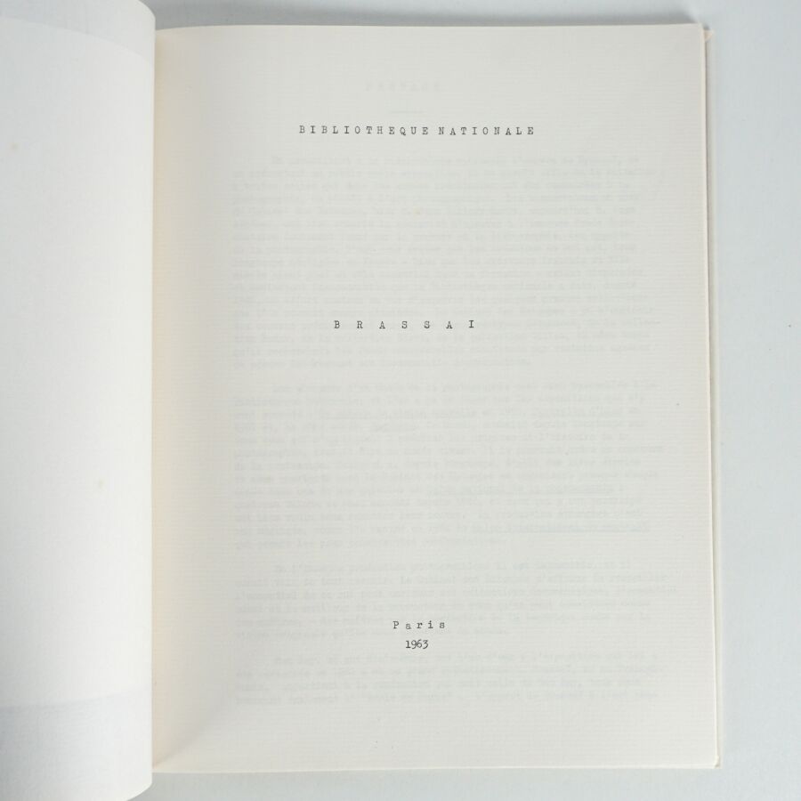 BRASSAI (Gyula Halász, dit). Catalogue de l'exposition Brassaï. Paris, Bibliothèque nationale, 1963. In-4 broché de 27 ff. ronéotypés, couv. brune imprimée en jaune et ornée d'une photographie contrecollée.