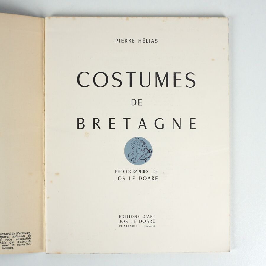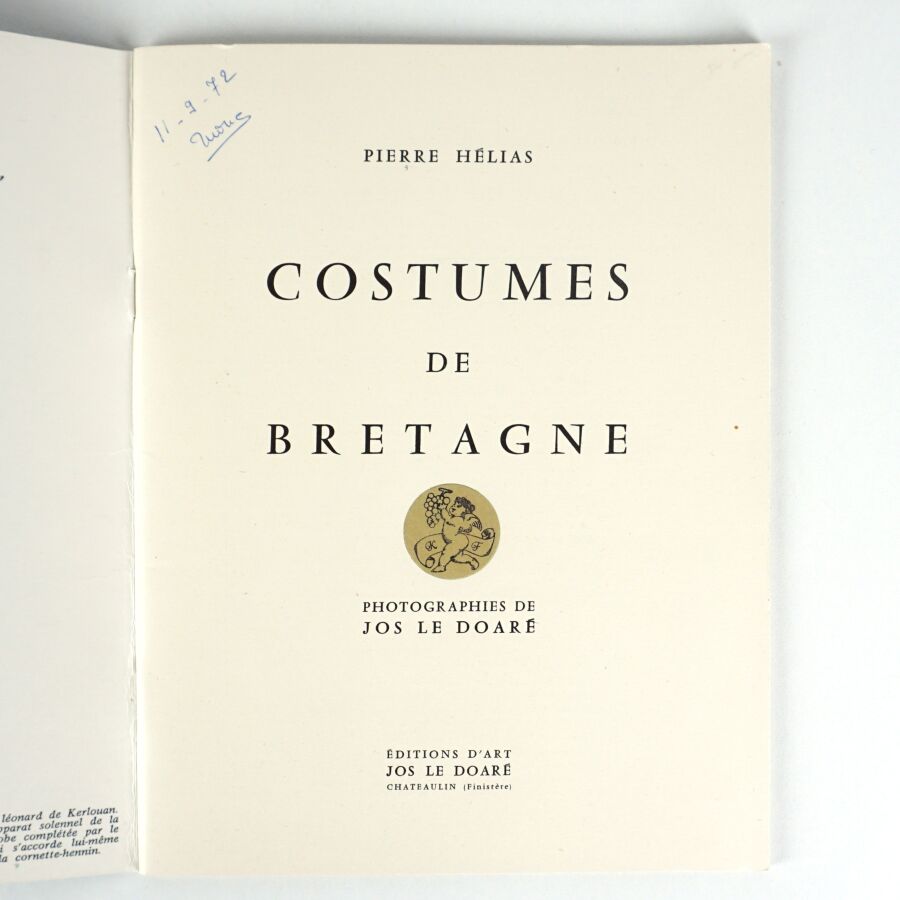 Bretagne - HÉLIAS (Pierre-Jakez). Costumes de Bretagne. Chateaulin, Éditions d'Art Jos Le Doaré, 1969. In-8 de 36 pp. broché, couverture illustrée de photographies en couleurs (dos frotté).
