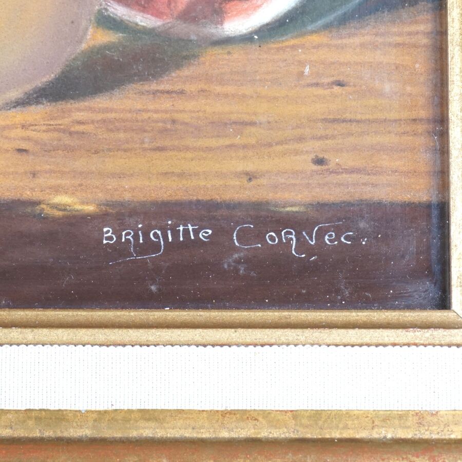 Brigitte CORVEC (XXe), "Nature morte aux fruits sur un entablement", pastel sur papier signé en bas à droite, 33.5 x 46 cm (à vue).