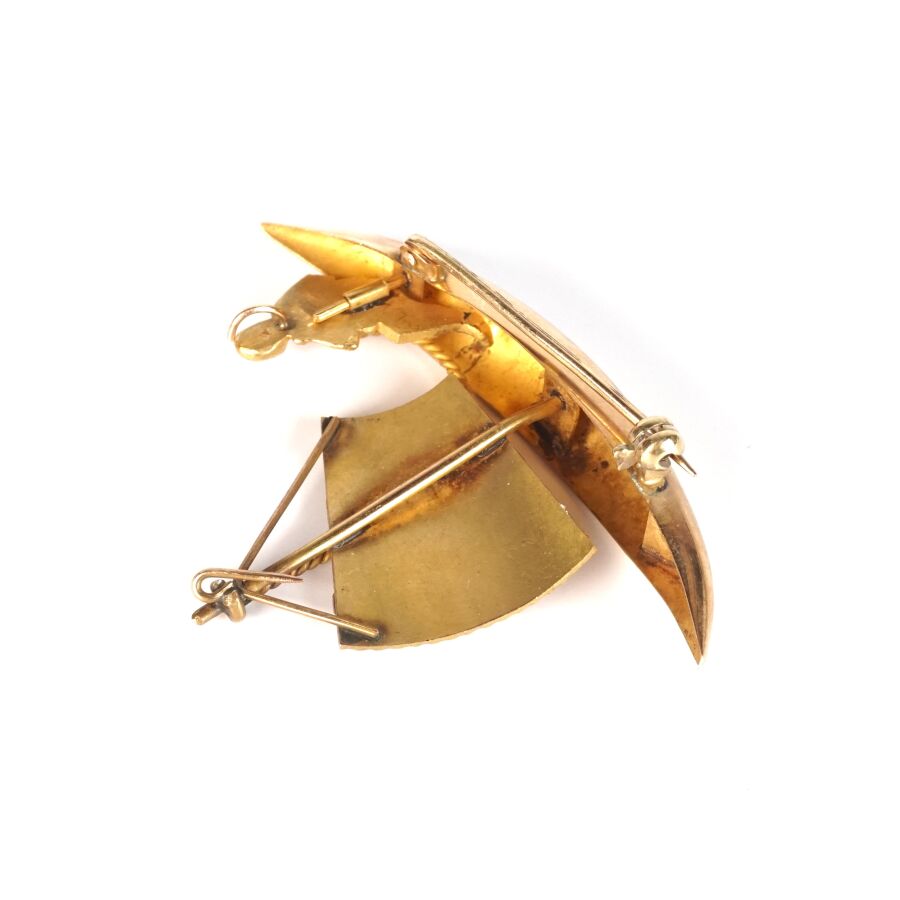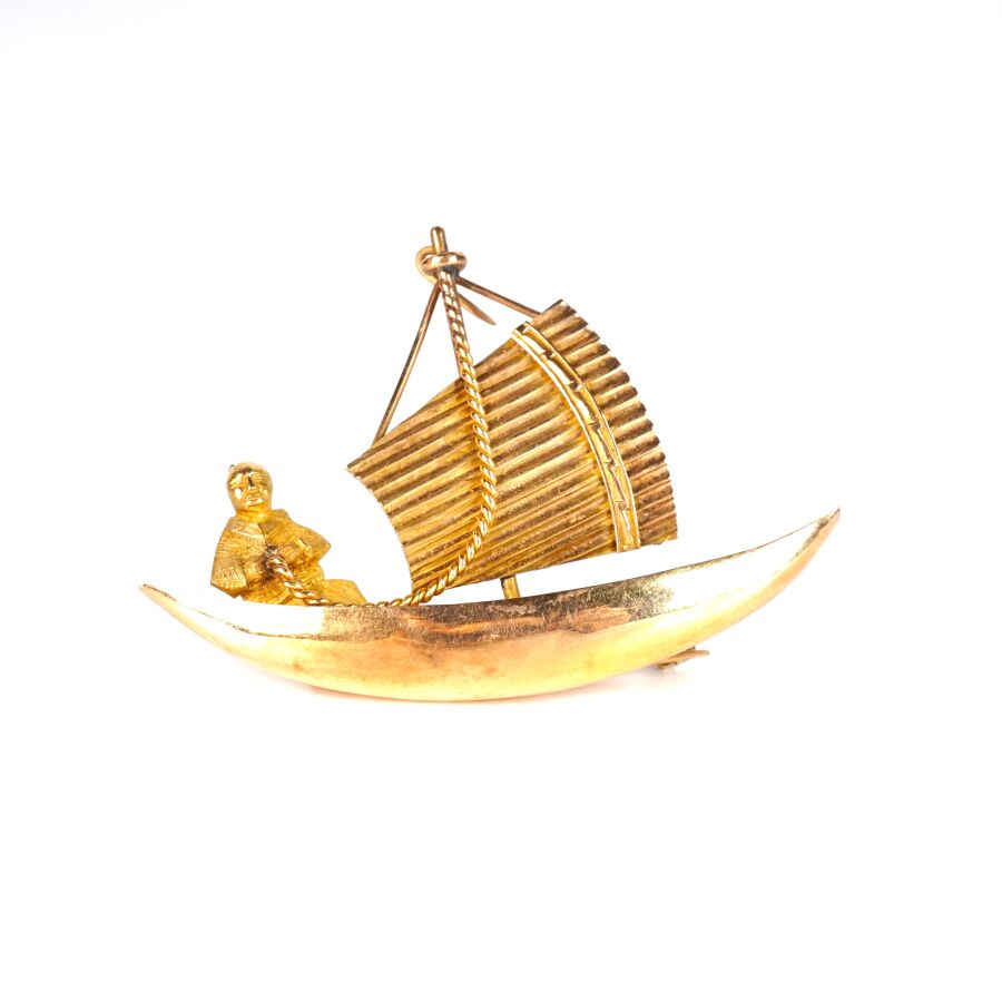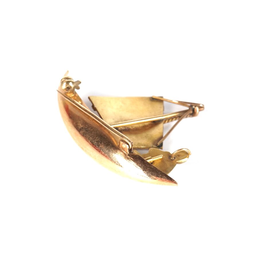 Broche "Bateau" en or jaune 18K (750/oo), l'épingle en or jaune 14K (585/oo), Dim. Motif : 3.8 x 4.9 cm. Poids brut : 7.8 g environ.