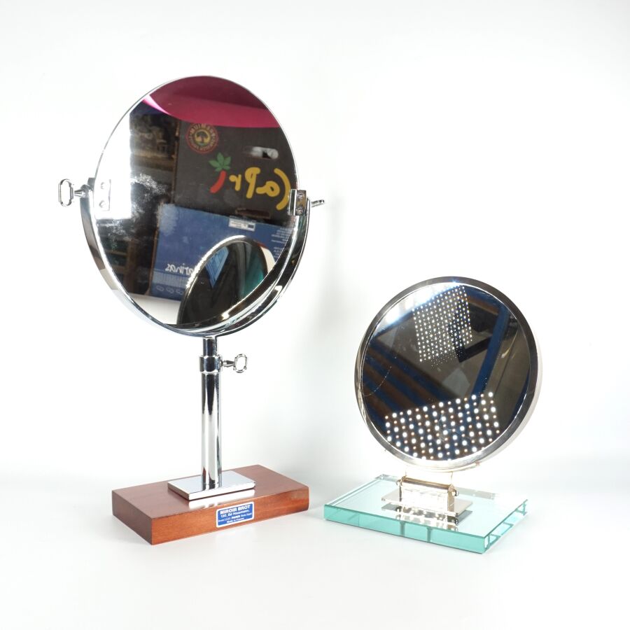 BROT : Deux miroirs optiques, présentés sur pieds, pivotants, H. 52 cm et 31 cm.