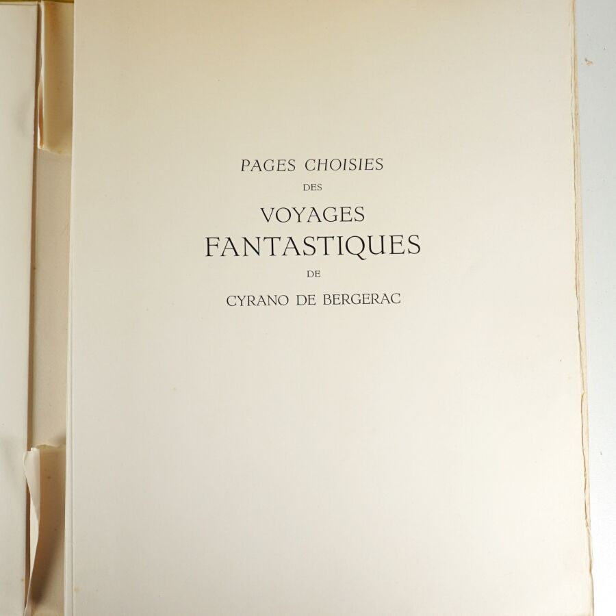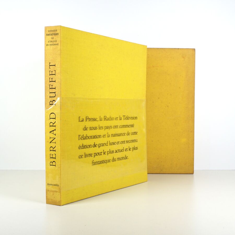 BUFFET (Bernard) & CYRANO DE BERGERAC (Savinien de). Voyages fantastiques aux états et empires de la lune et du soleil. Paris, Joseph Foret, [1958]. In-folio, en ff., couv. rempliée, chemise et étui de l'éditeur toilés jaune.