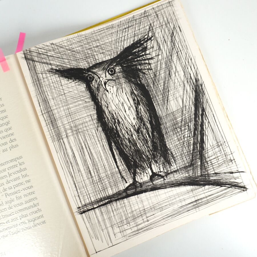 L'illustration se compose de 18 pointes-sèches originales de Bernard Buffet, dont 2 sur double page, protégées par des serpentes.