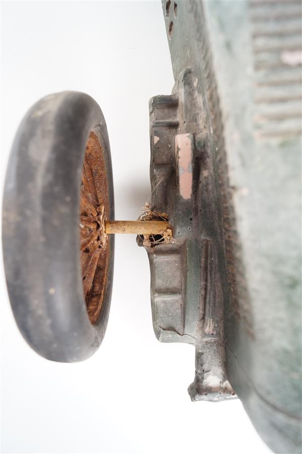 Bugatti "course des années 30 " en bakélite, métal et caoutchouc, piloté par Fanjo ?, L. 73 cm (en l'état).
