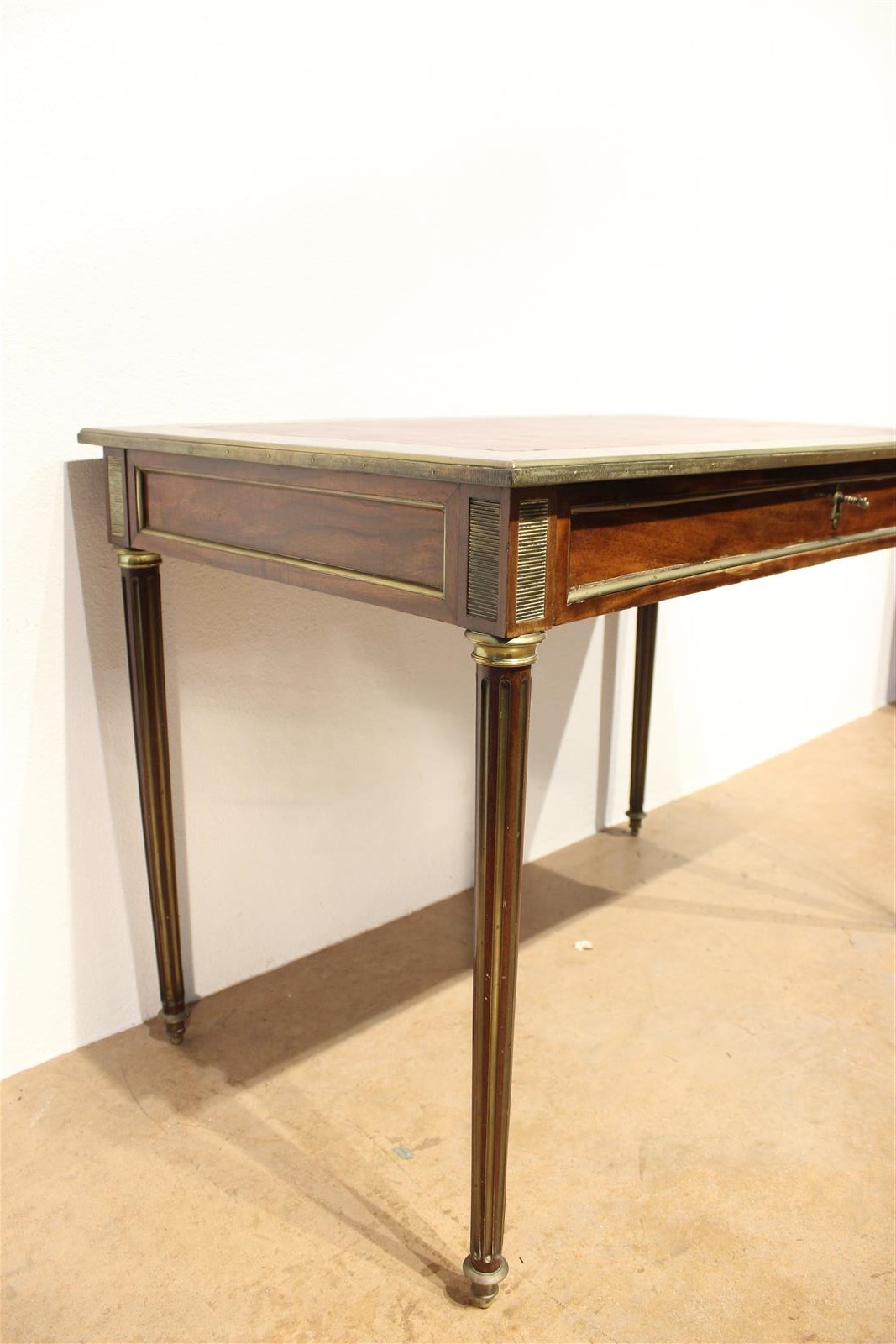 Bureau plat de style Louis XVI, en placage d'acajou, ouvrant à un tiroir, 60.5 x 100.5 x H. 72 cm (avec sa clef cassée)