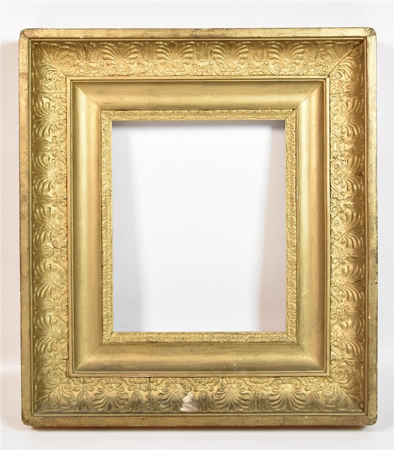 Cadre à clés à décor de palmettes, pour une toile de 28 x 24 cm, 19e siècle, Dim. hors tout : 47 x 42,5 cm (petits manques)