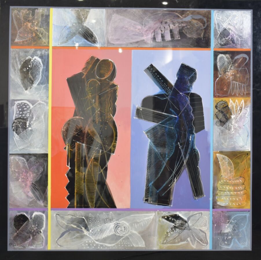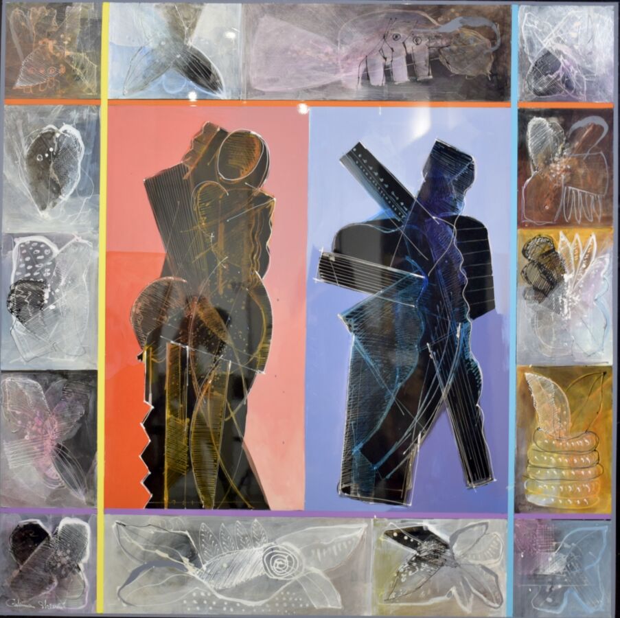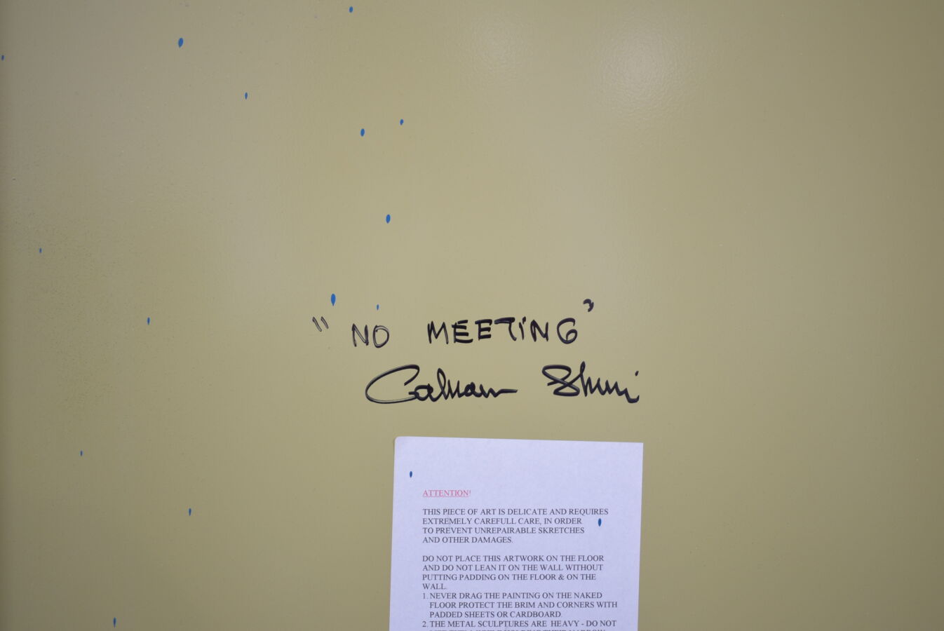 Calman SHEMI (1939), "No meeting",acrylique sur tôle laquée, signée en bas à gauche et contre signé au dos, 100 x 100 cm