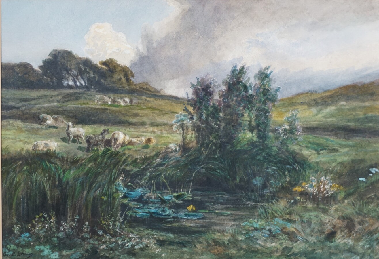 Camille BERNIER (1823-1902), "Troupeau de moutons", aquarelle sur papier signée en bas à gauche, 38 x 54 cm (à vue).