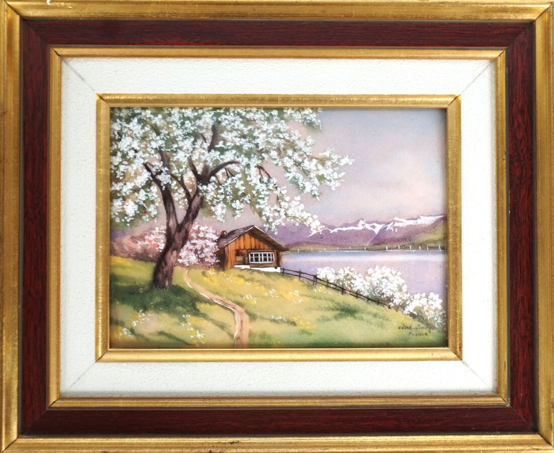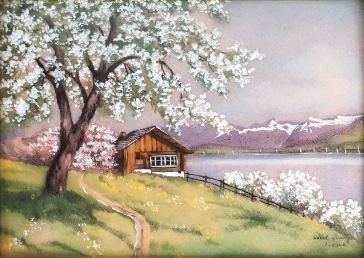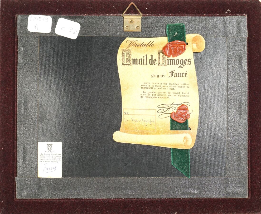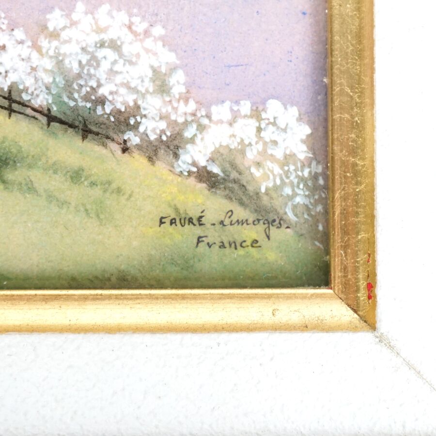 Camille FAURÉ (1874-1956) à Limoges, "Le Printemps", plaque émaillée signée en bas à droite, 12 x 16 cm.