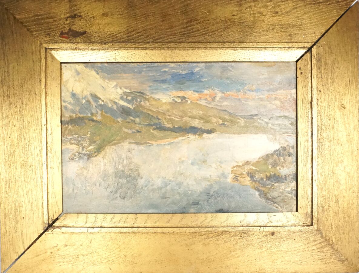 Camille VAN CAMP (1843-1891), "Lac de Thoune près de St-Béatenberg" 1890, huile sur toile, signée et datée en bas à gauche, contresignée, titrée et datée au dos, 29 x 45 cm.