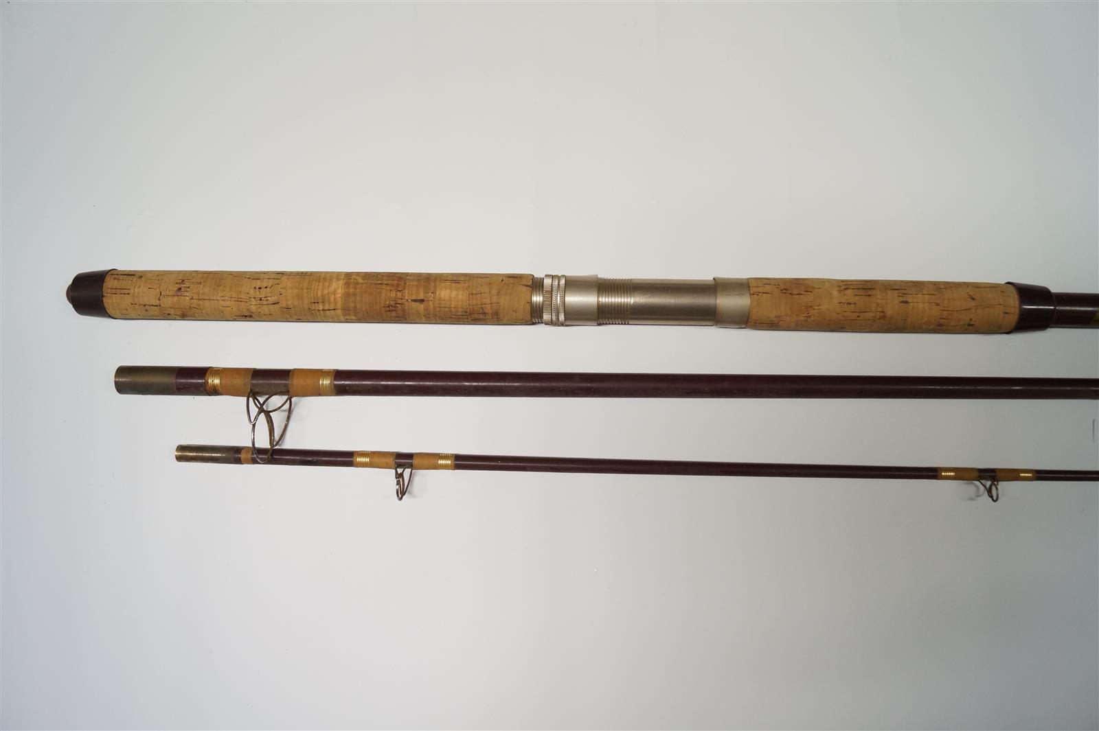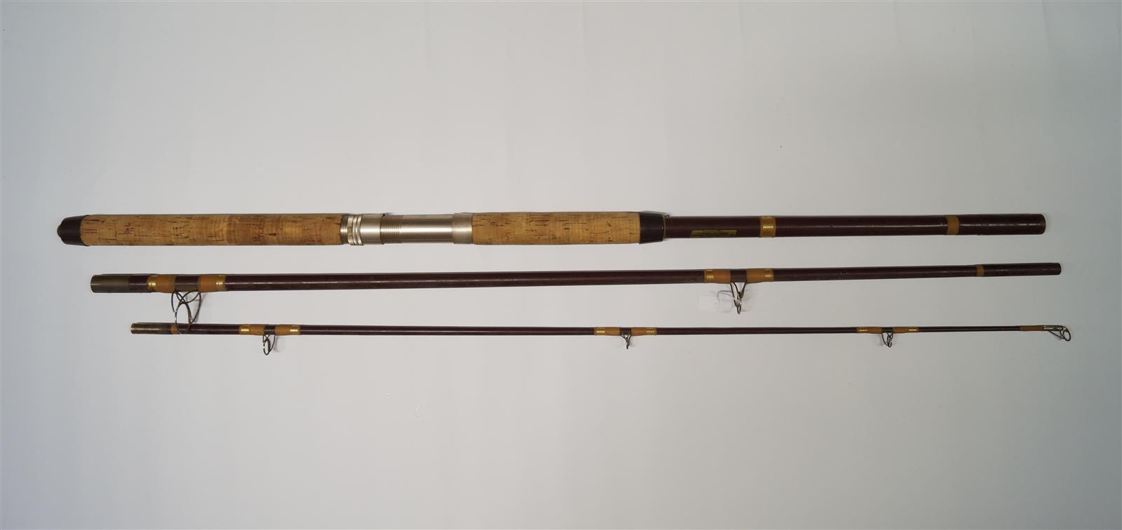 Canne lancer Sebnitz Sachs en fibre à 3 brins, poignée en liège, 2 anneaux à vis, L. 300 cm