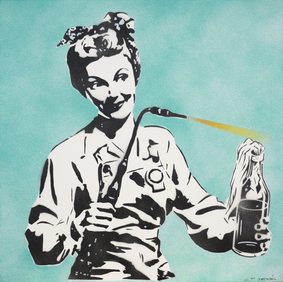 CANNED (XX-XXIe), "Breakfast" 2024, aérosol sur toile signée "C.P. DENOËL" en bas à droite, contresignée, titrée et datée au dos, 50 x 50 cm.