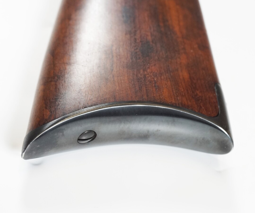 CARABINE DE TIR A REPETITION MANUELLE DE MARQUE AMEDEO ROSSI, calibre 44 magnum, percussion centrale, magasin tubulaire sous le canon, boitier de culasse en acier bronzé noir, canon rond rayé de 59,5 cm à pans au tonnerre, hausse réglable, crosse droite en noyer de 34 cm, arme numéro : M057712, catégorie C soumise à déclaration, mécanisme et canon semblant en très bon état, longueur totale : 9106 cm, BE/TBE.