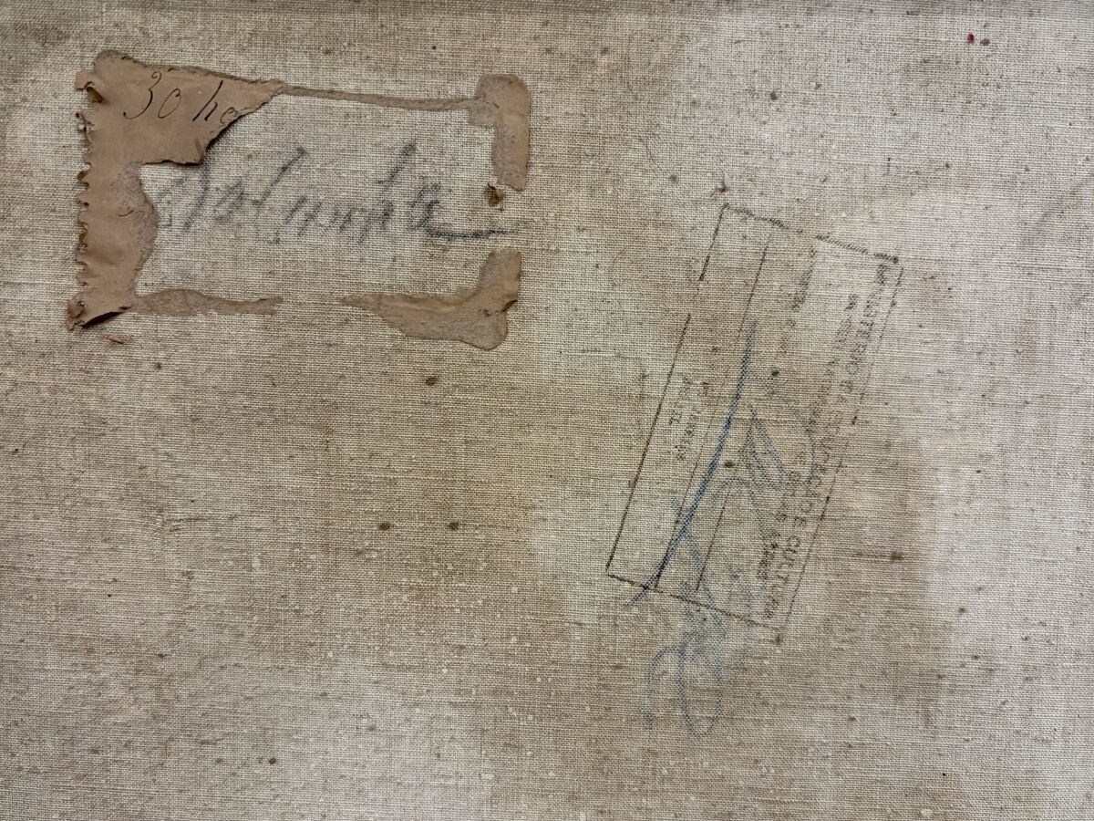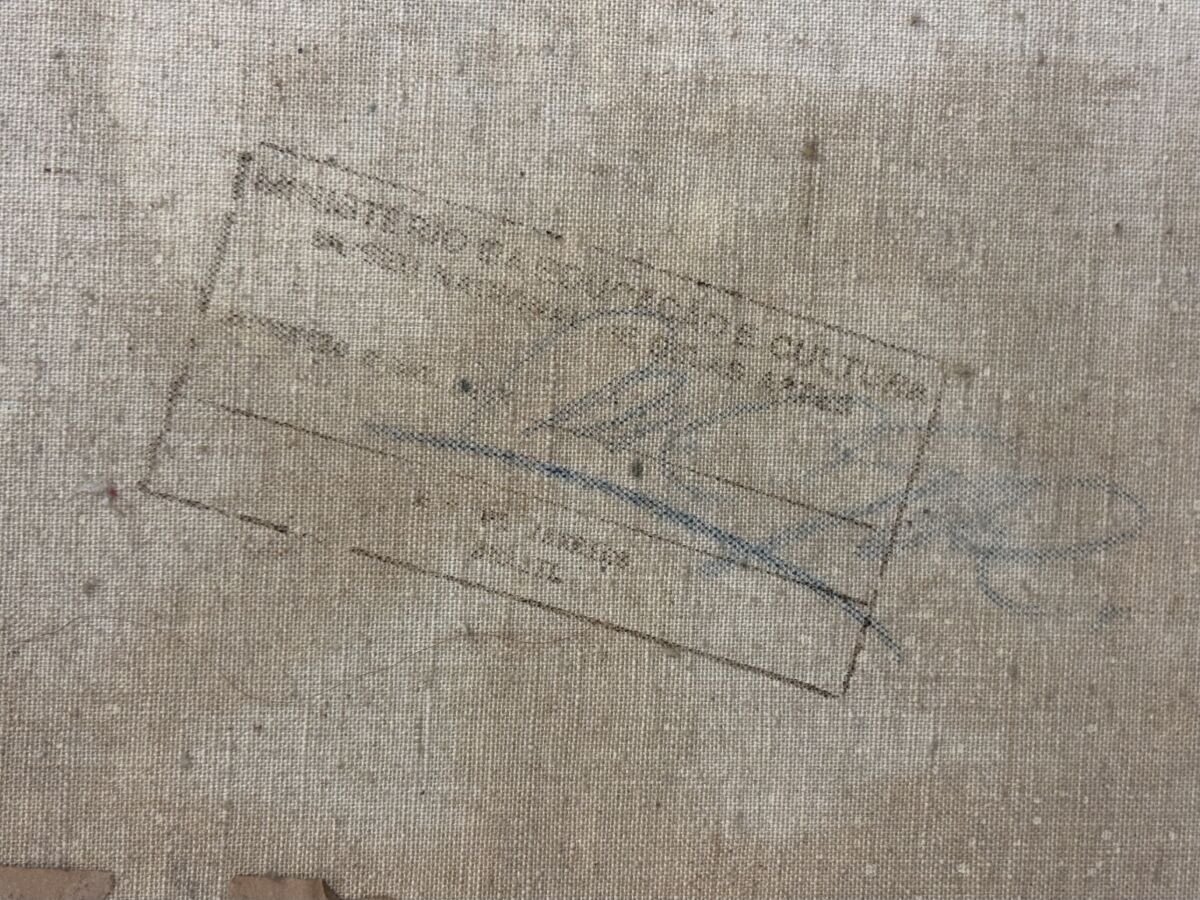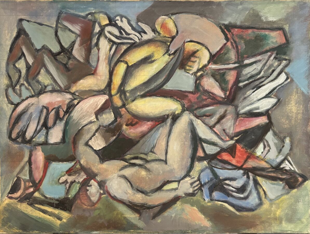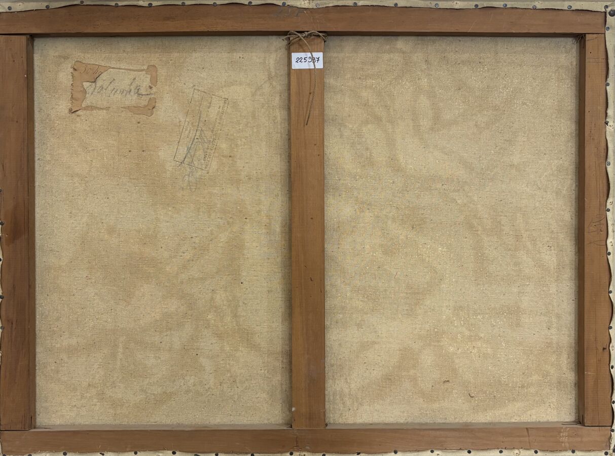 Carlos DA CUNHA (1907-?), "Composition", huile sur toile, signée au dos, tampon du ministère de la culture, 60 x 80, 5 cm.