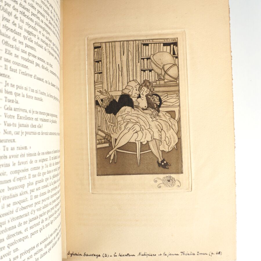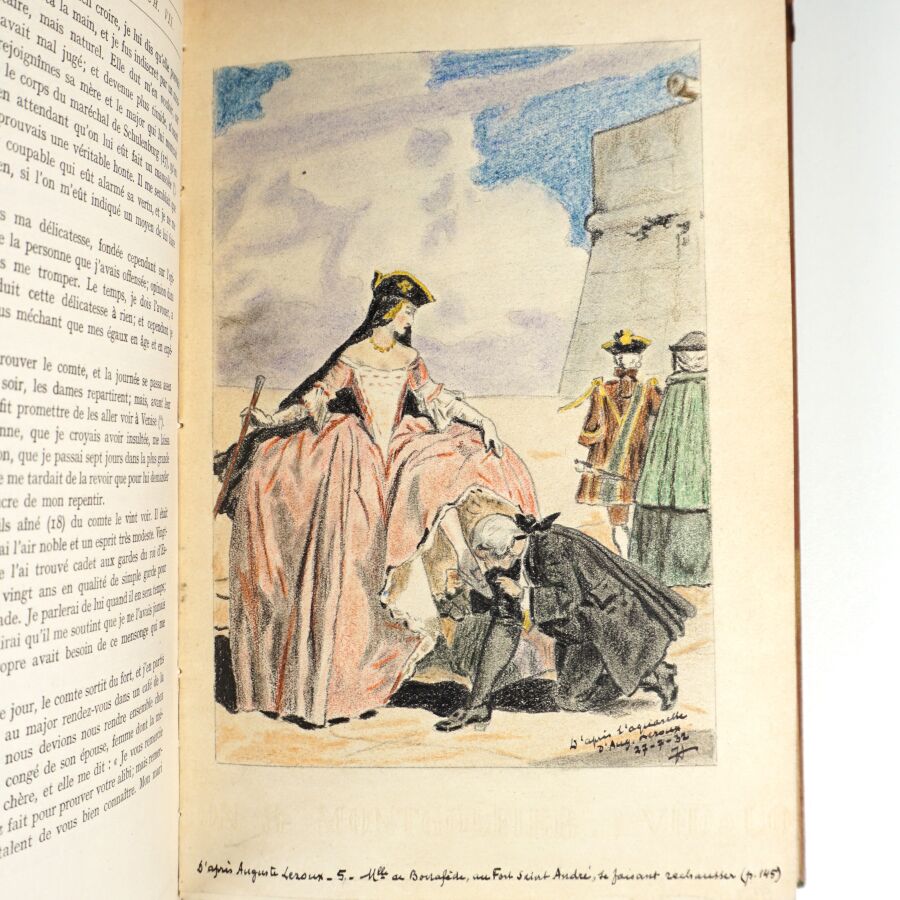 Exemplaire enrichi de diverses suites de gravures illustrant d'autres éditions des Mémoires de Casanova dont celles de Sylvain Sauvage, Auguste Leroux ou Chauvet. Ex-libris J. Schilizzi.