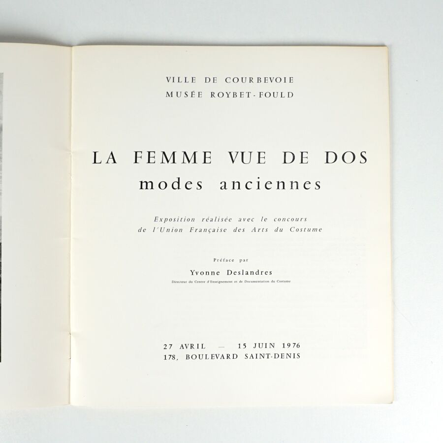 - La Femme vue de dos. Modes anciennes. Exposition réalisée avec le concours de l'Union Français des Arts du Costume, préface par Yvonne Deslandres. Courbevoie, Musée Roybet-Fould, 27 avril - 15 juin 1976. Reproductions en noir.